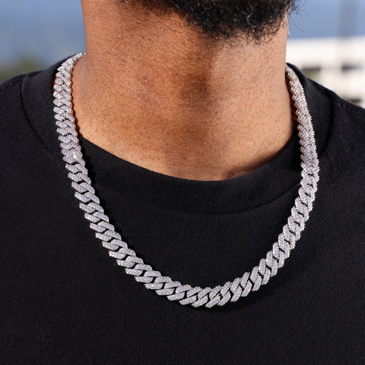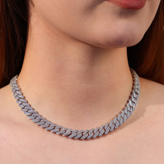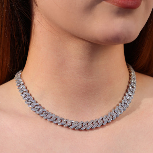 10mm Moissanite Prong Link Cuban Chain - 925 Silver
