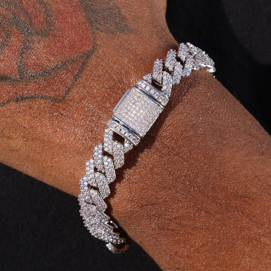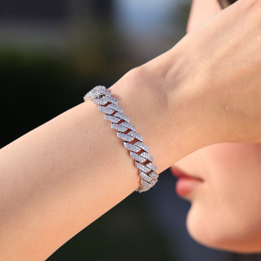 10mm Moissanite Prong Link Cuban Bracelet - 925 Silver