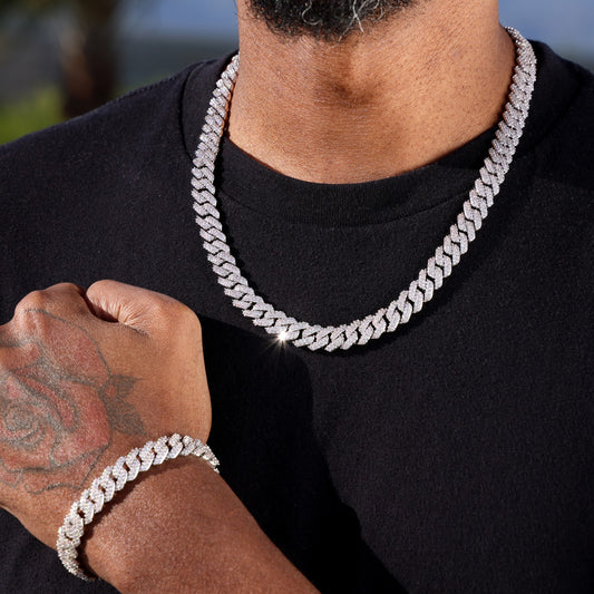 10mm Moissanite Prong Link Cuban Necklace + Bracelet Bundle - 925 Silver