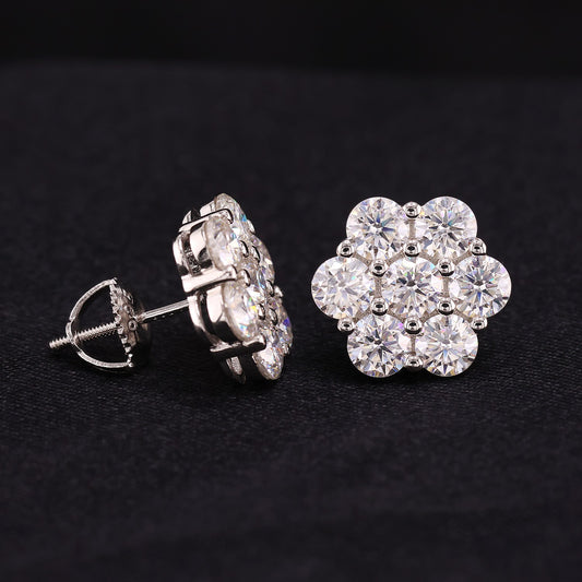 12mm Iced out Moissanite Flower Stud Earrings - 925