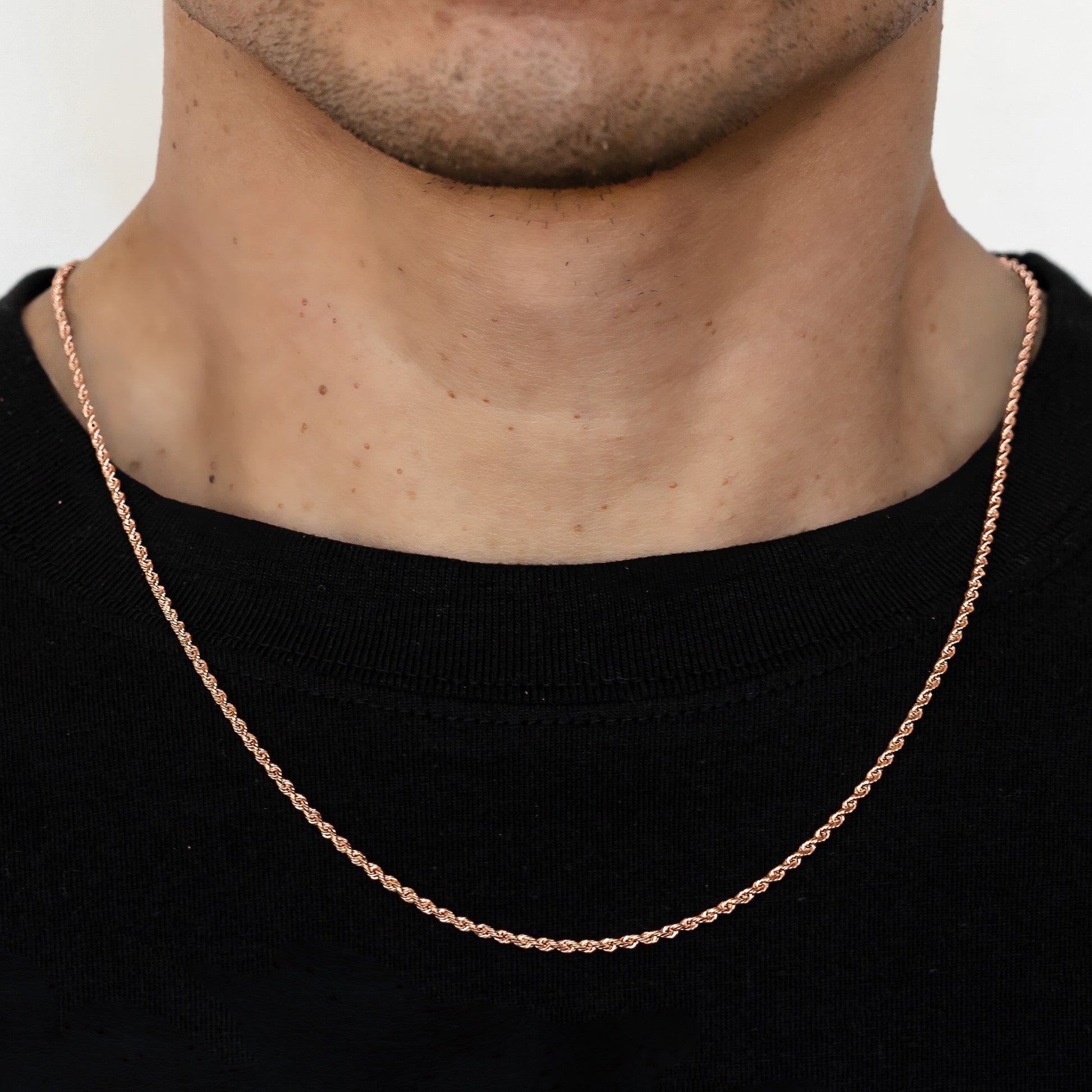 1.5mm Solid Diamond Cut Rope Chain - 14k Rose Gold