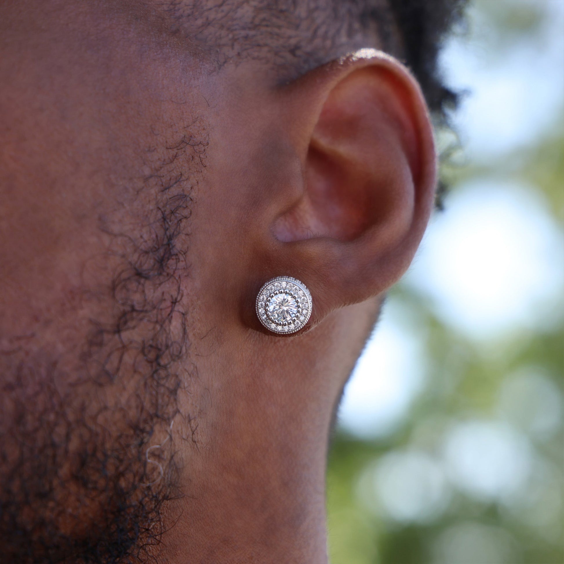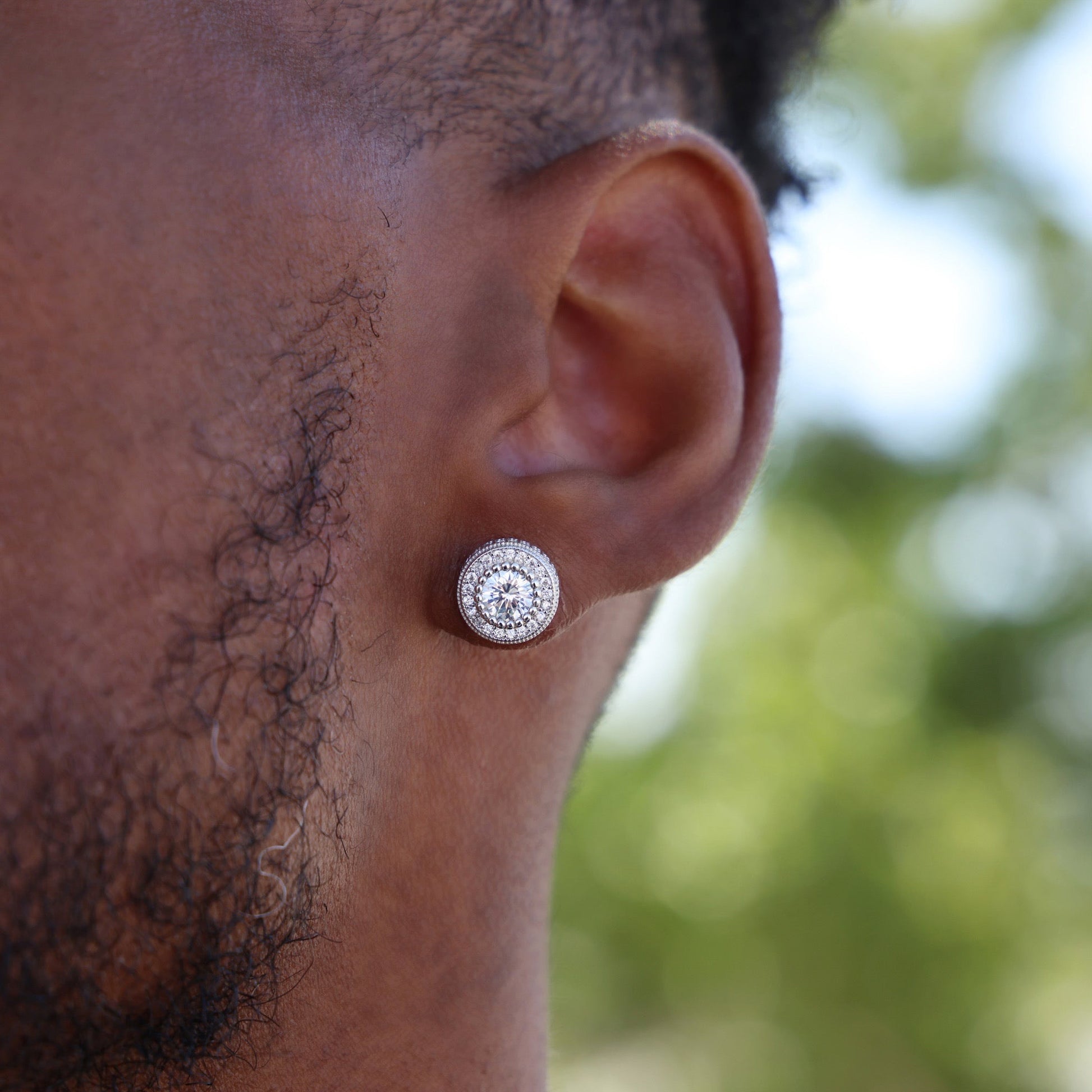 Fully Iced Out Round Halo Stud Earrings - 925 Silver