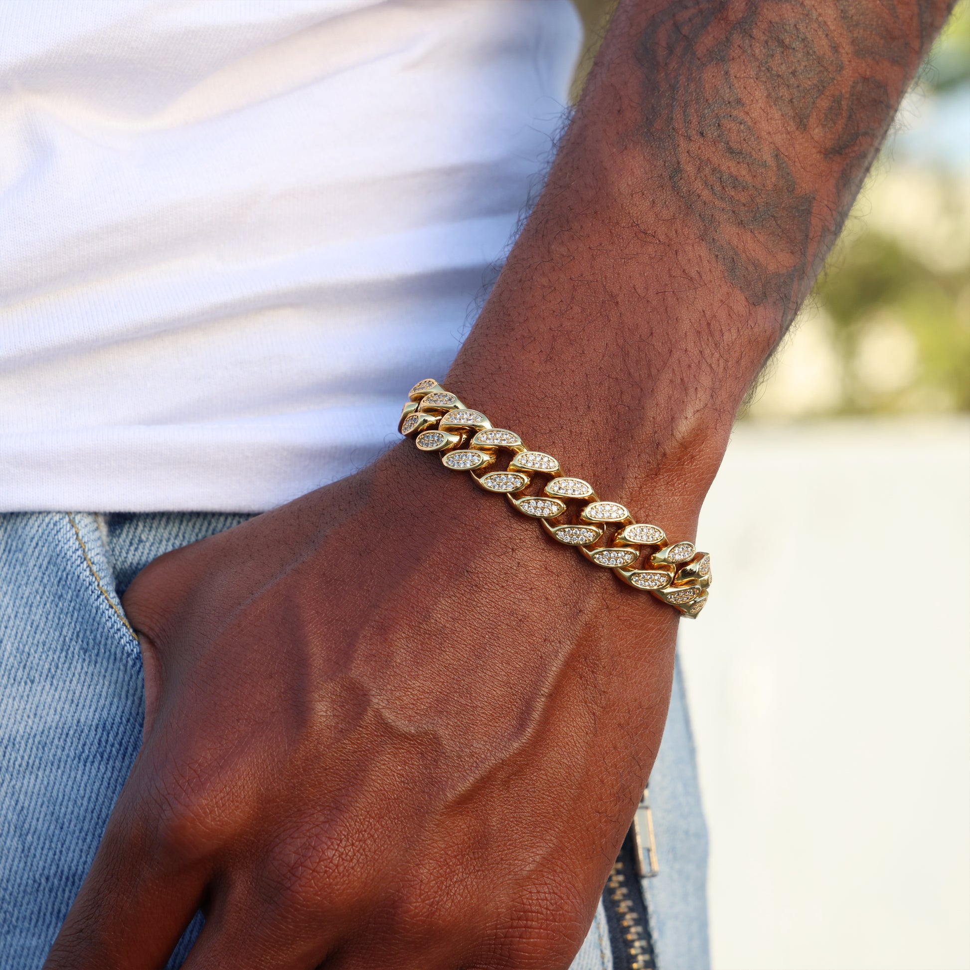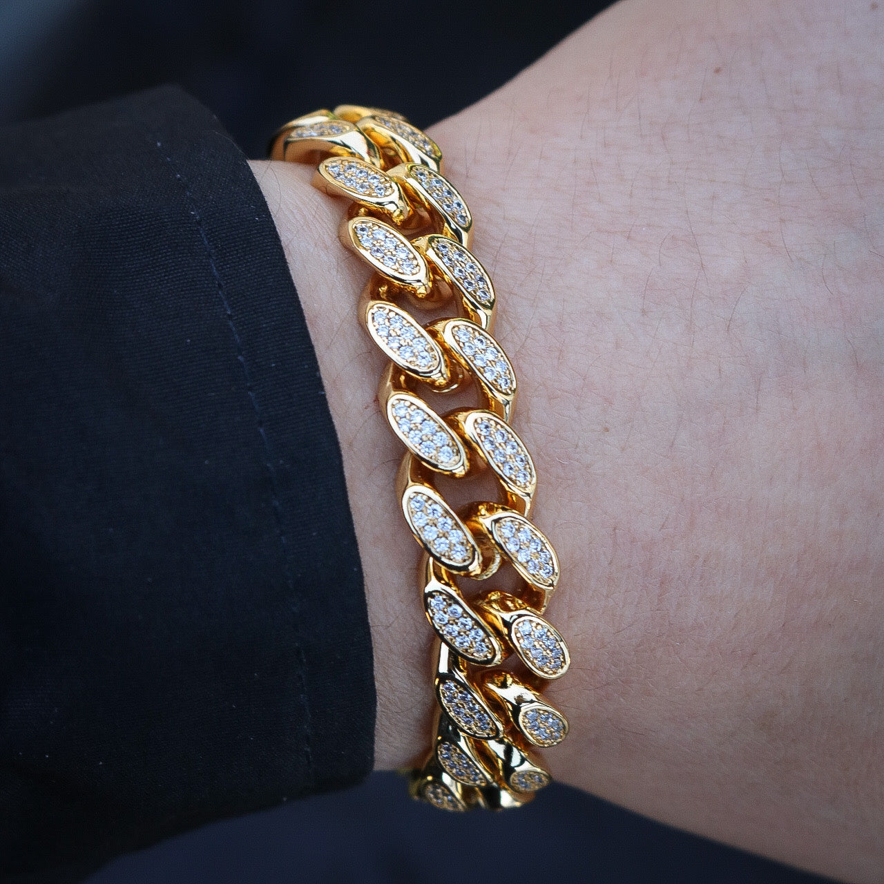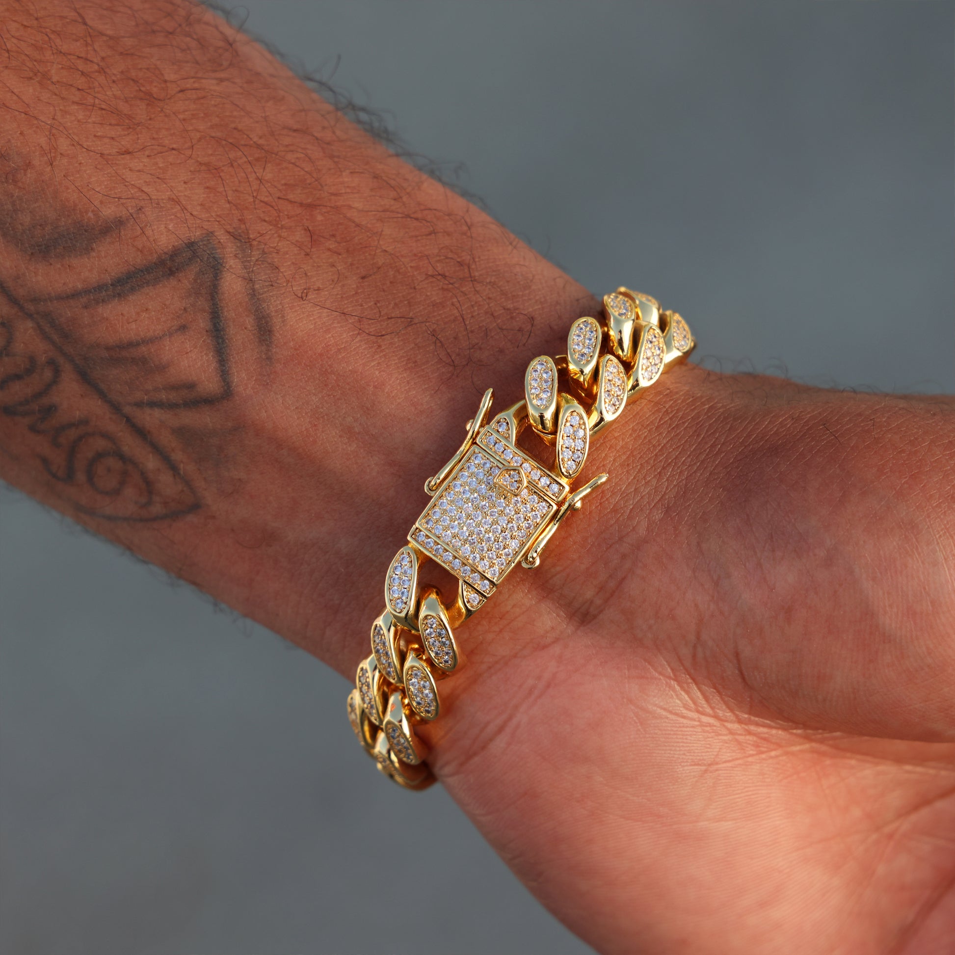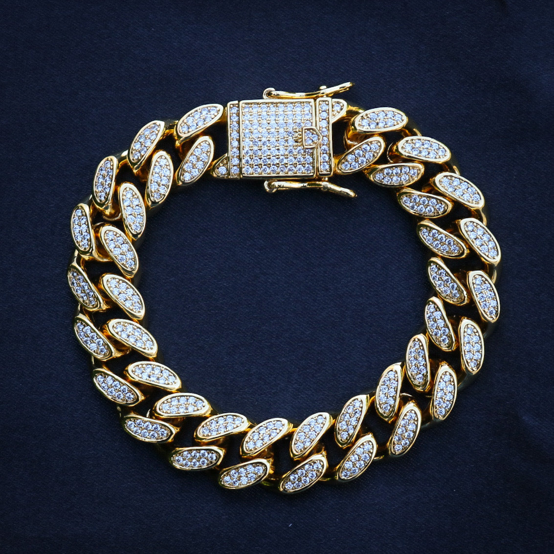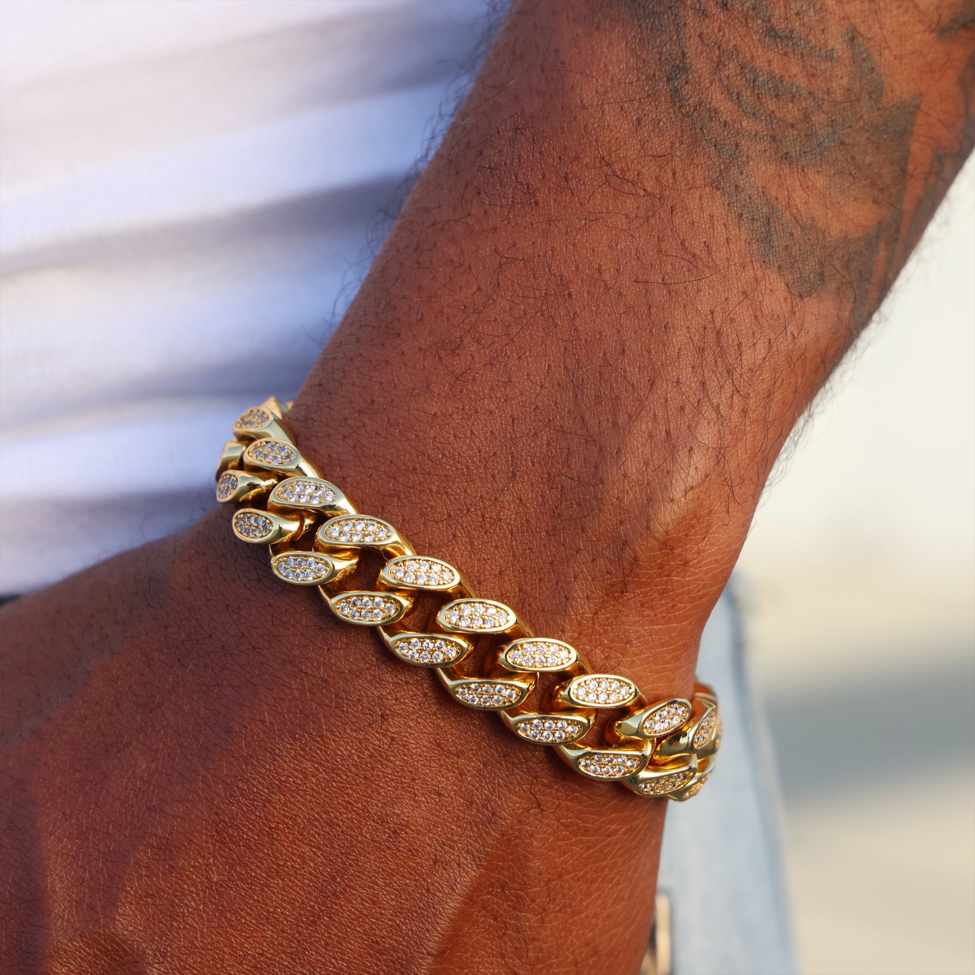 12mm Iced Out Miami Cuban Bracelet - Gold