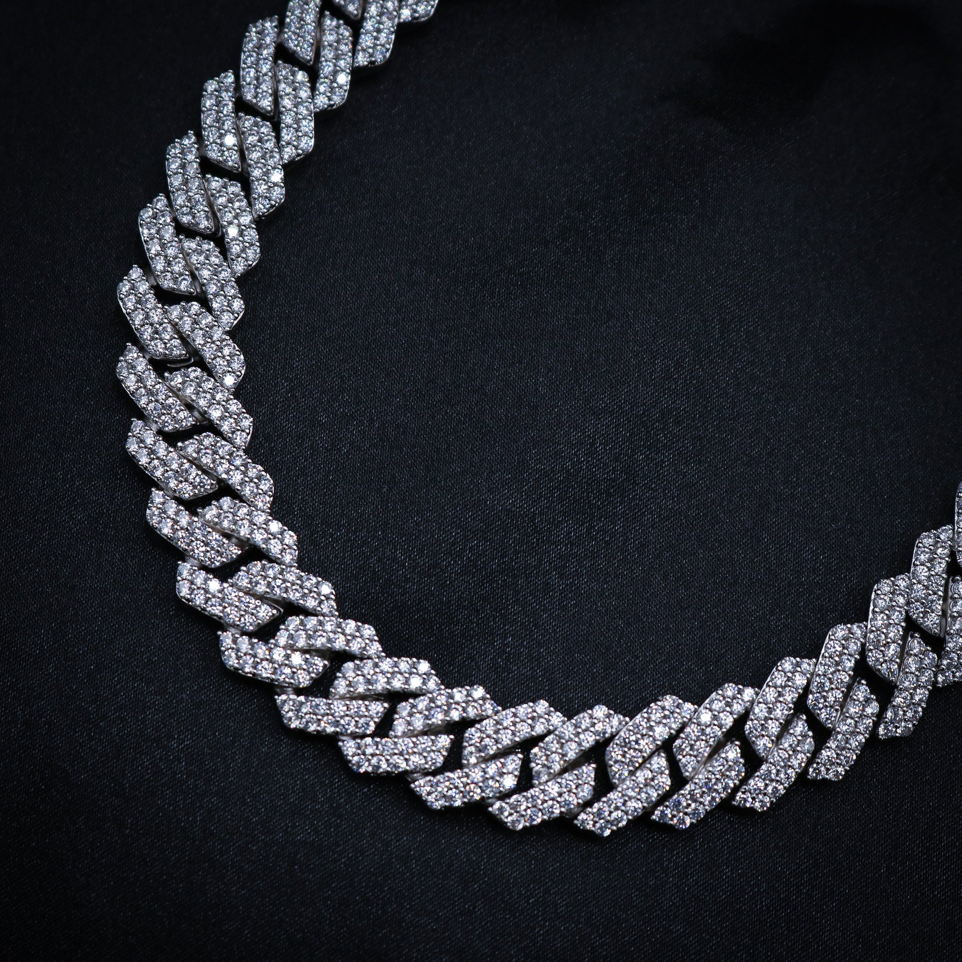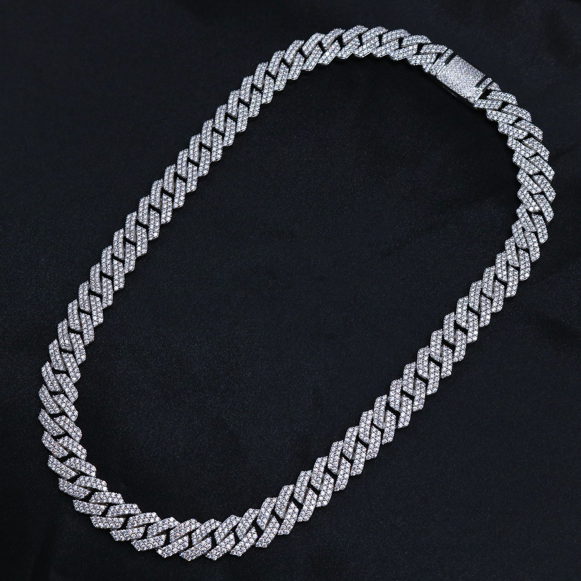 13mm Diamond Prong link Cuban Chain - White Gold