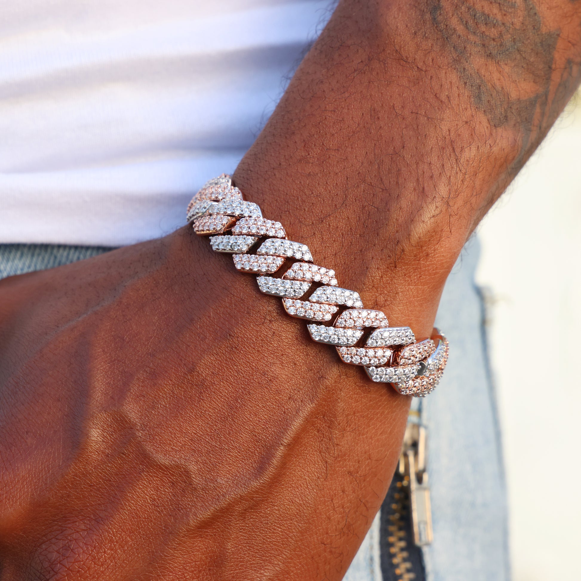 13mm Diamond Prong Link Bracelet - 2 Tone