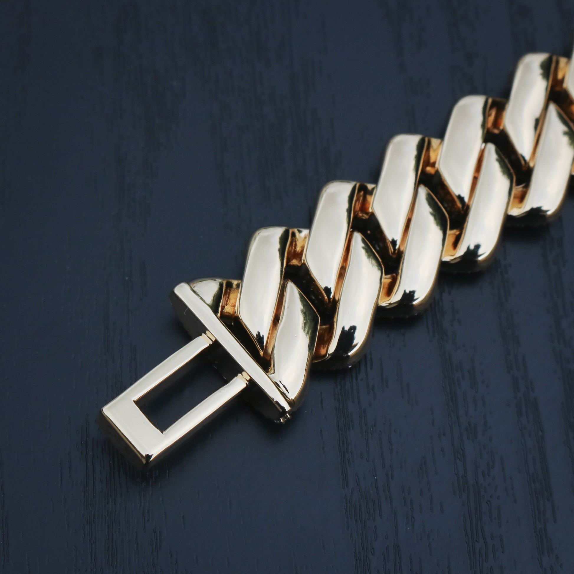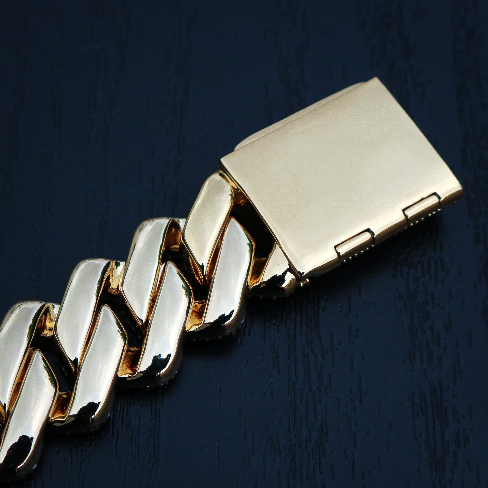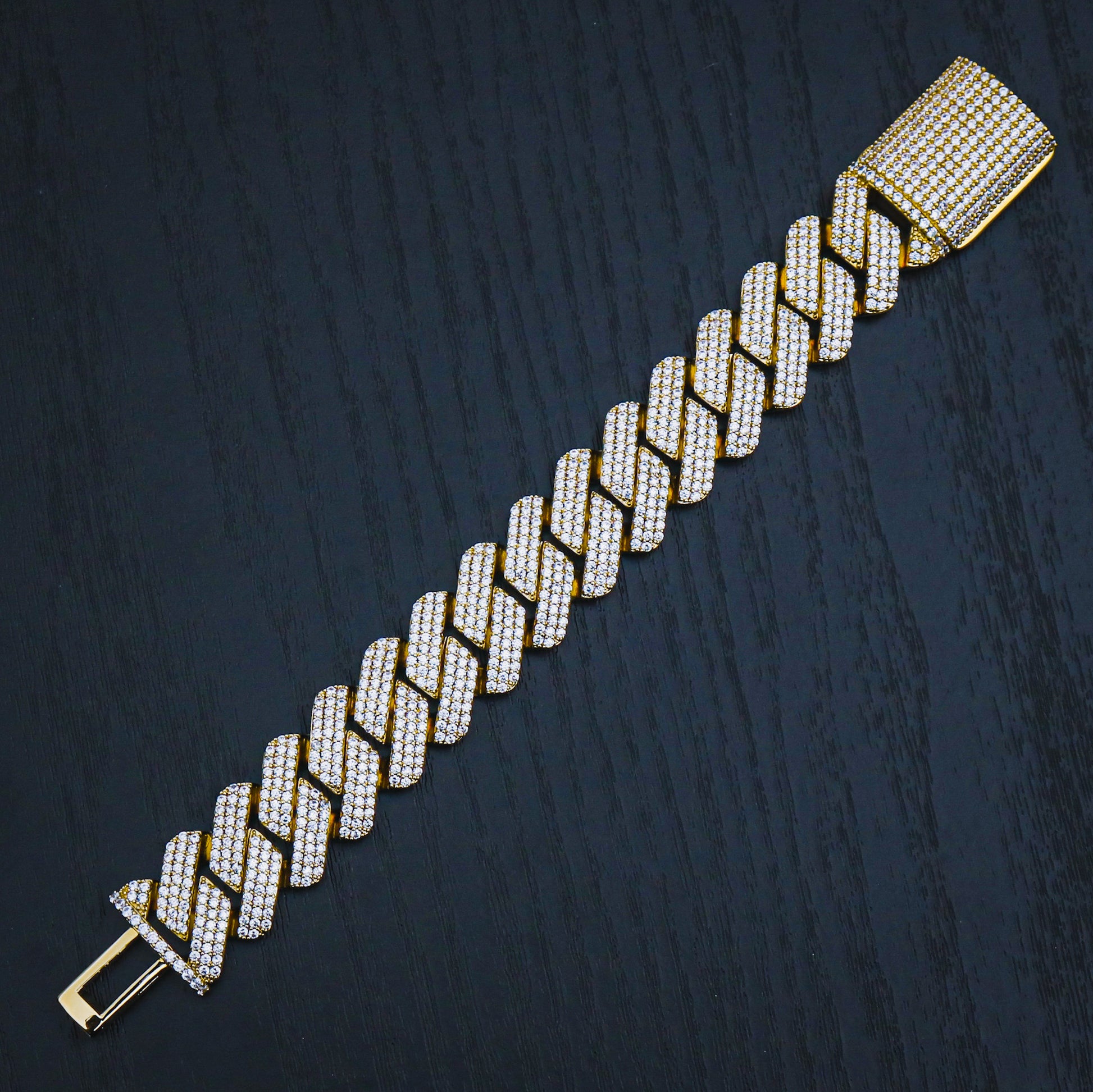 19mm Diamond Prong Link Cuban Bracelet - Gold