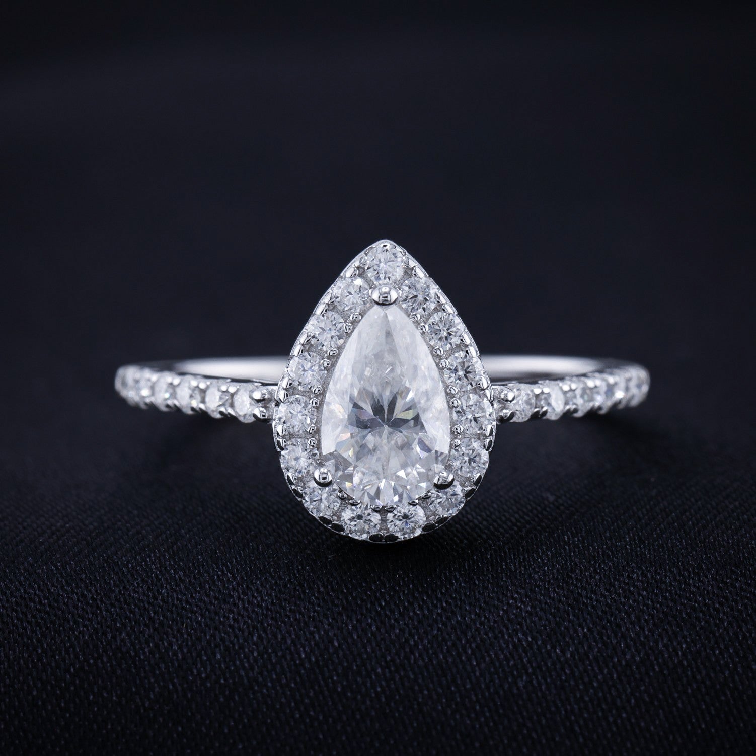 1ct Moissanite Pear Cut Halo Ring - 925 Silver