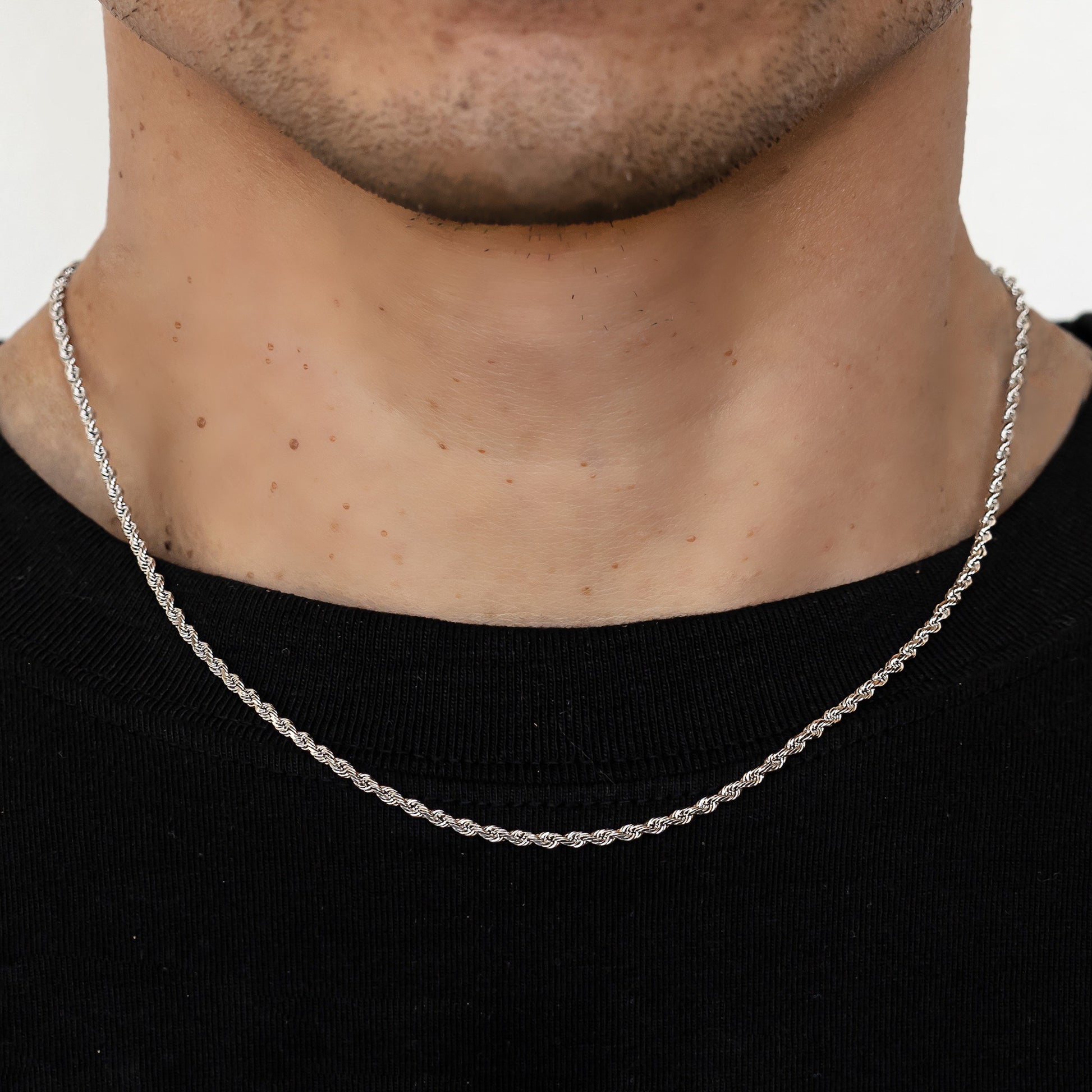 2mm Solid Diamond Cut Rope Chain - 14k White Gold