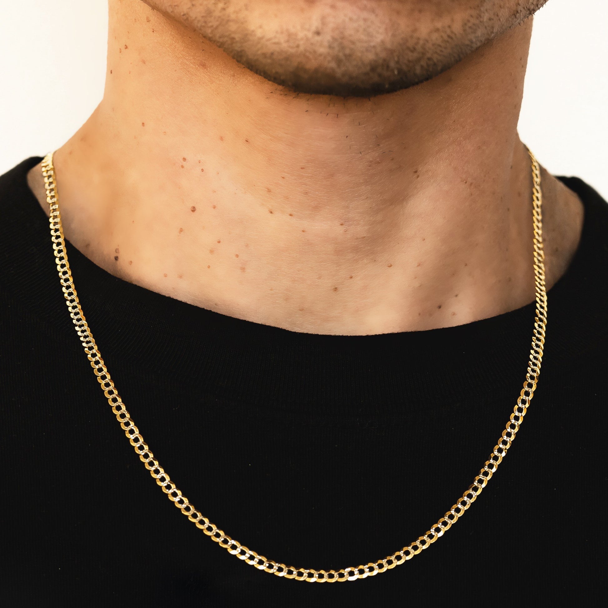 3mm Solid Pave Curb Cuban Chain - 14k Gold