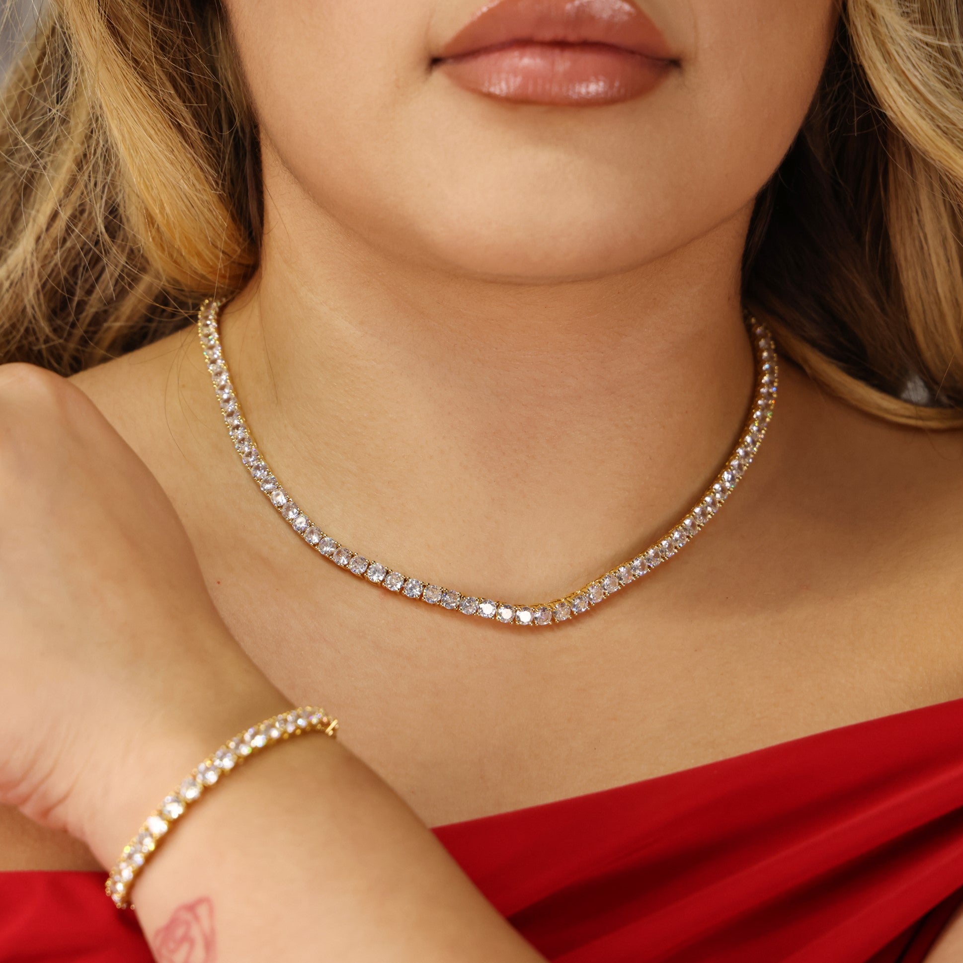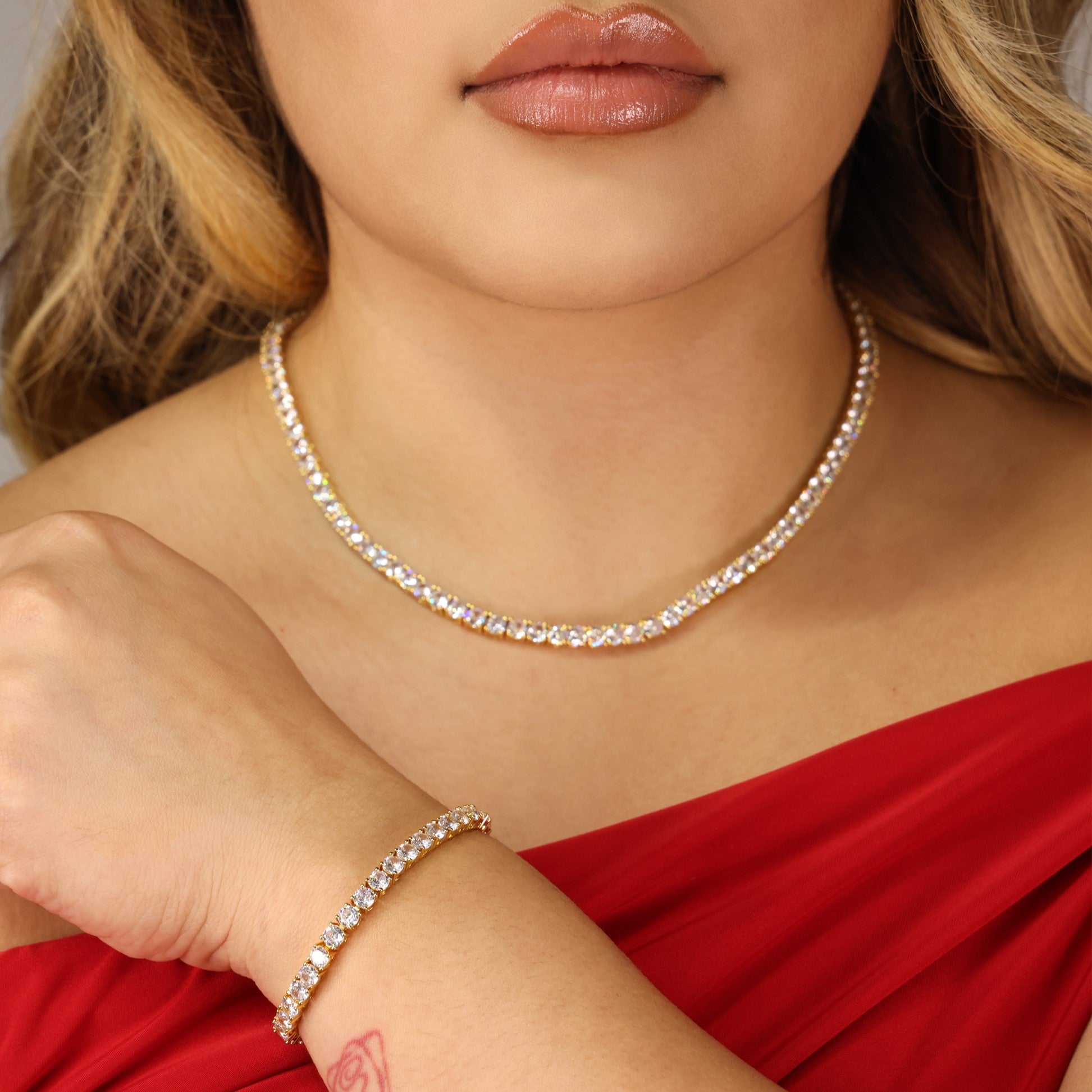 4mm Tennis Necklace + Bracelet Bundle - Gold