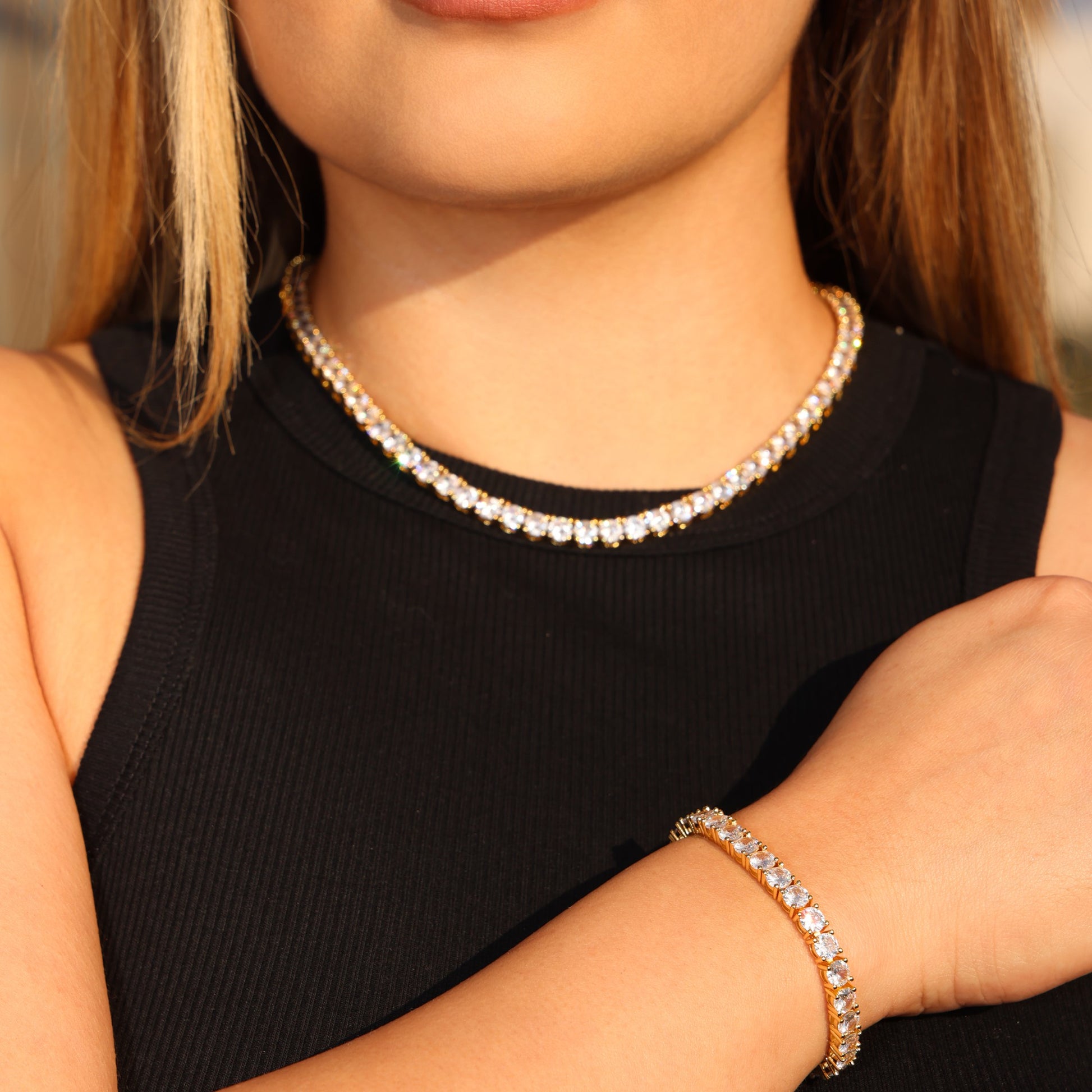 5mm Tennis Necklace + Bracelet Bundle - Gold