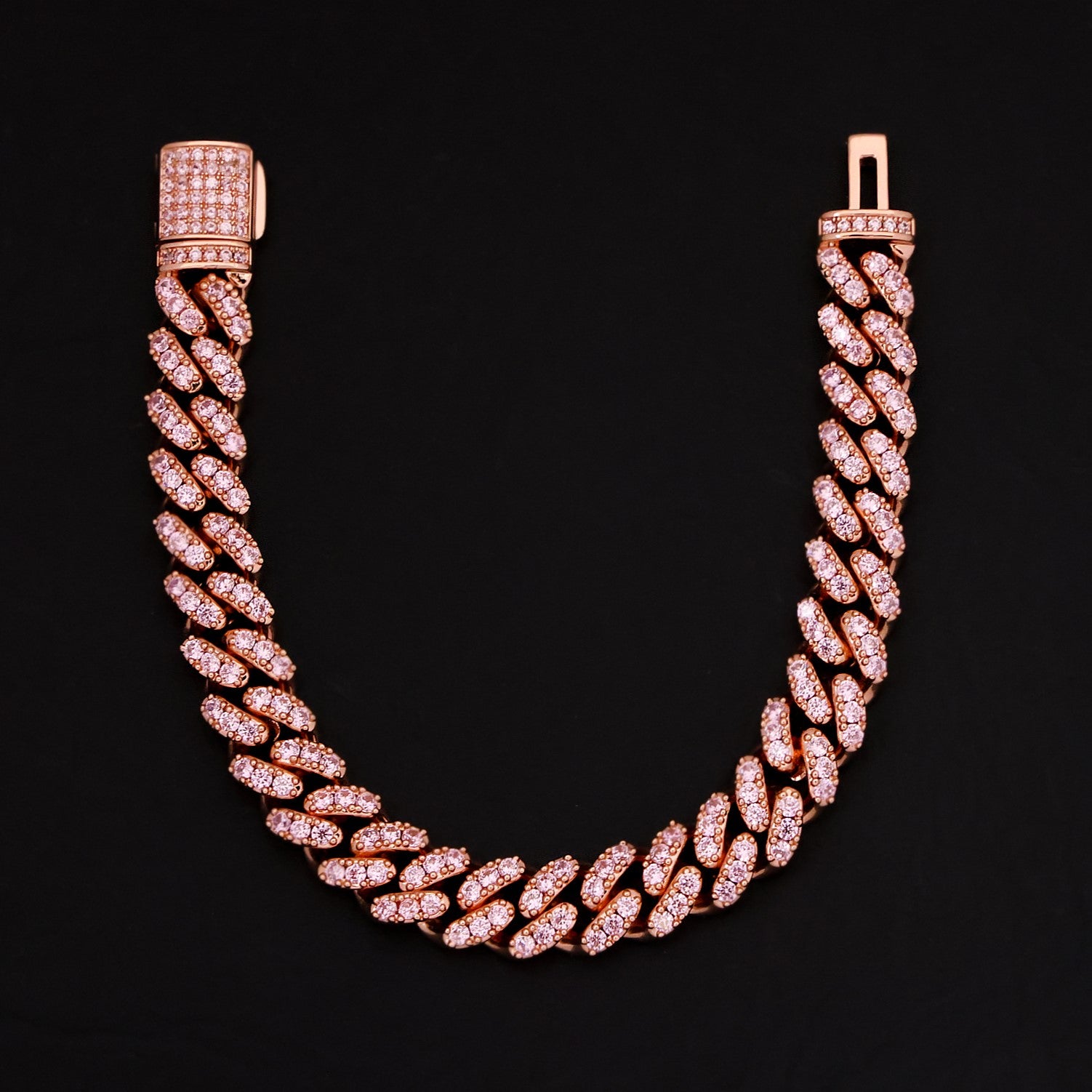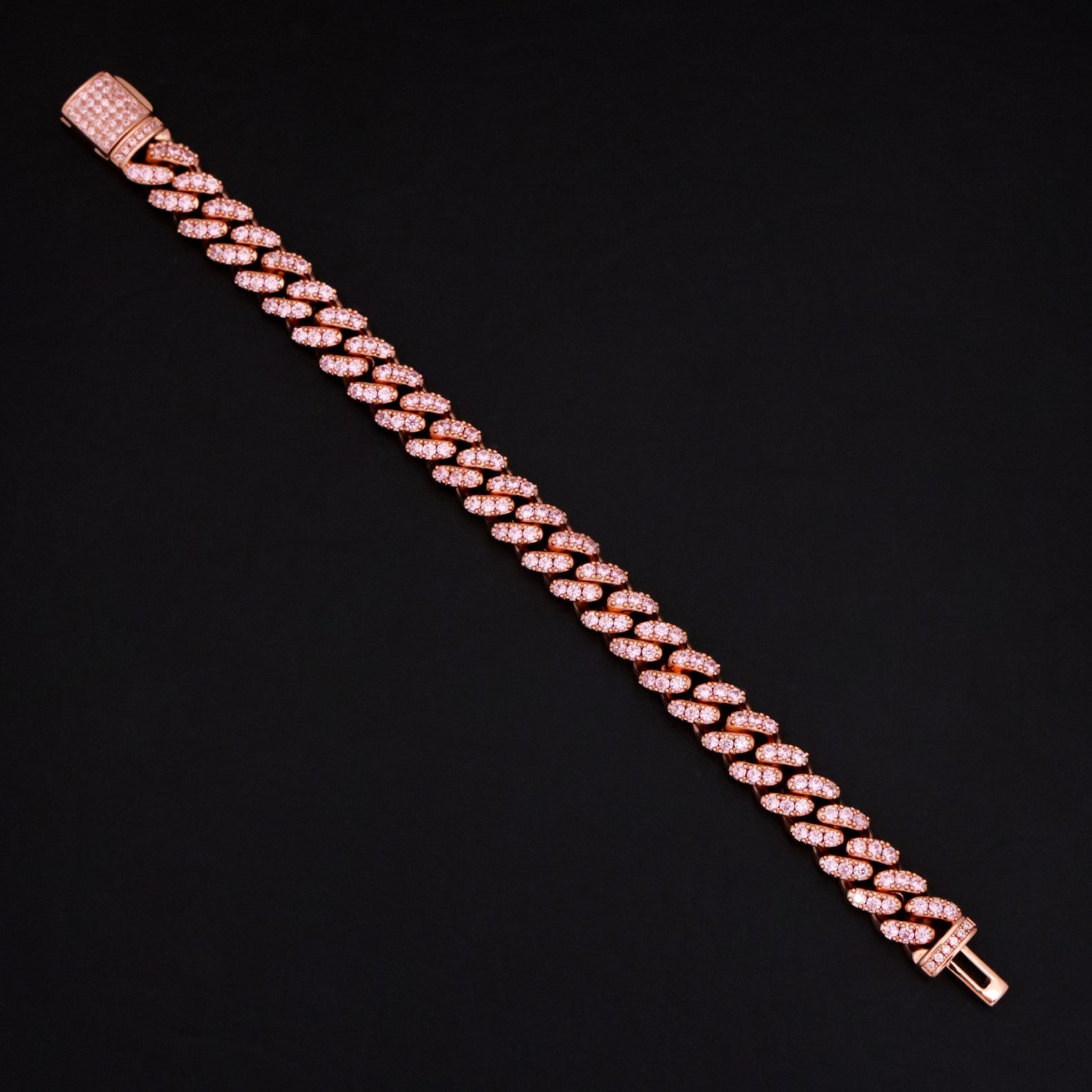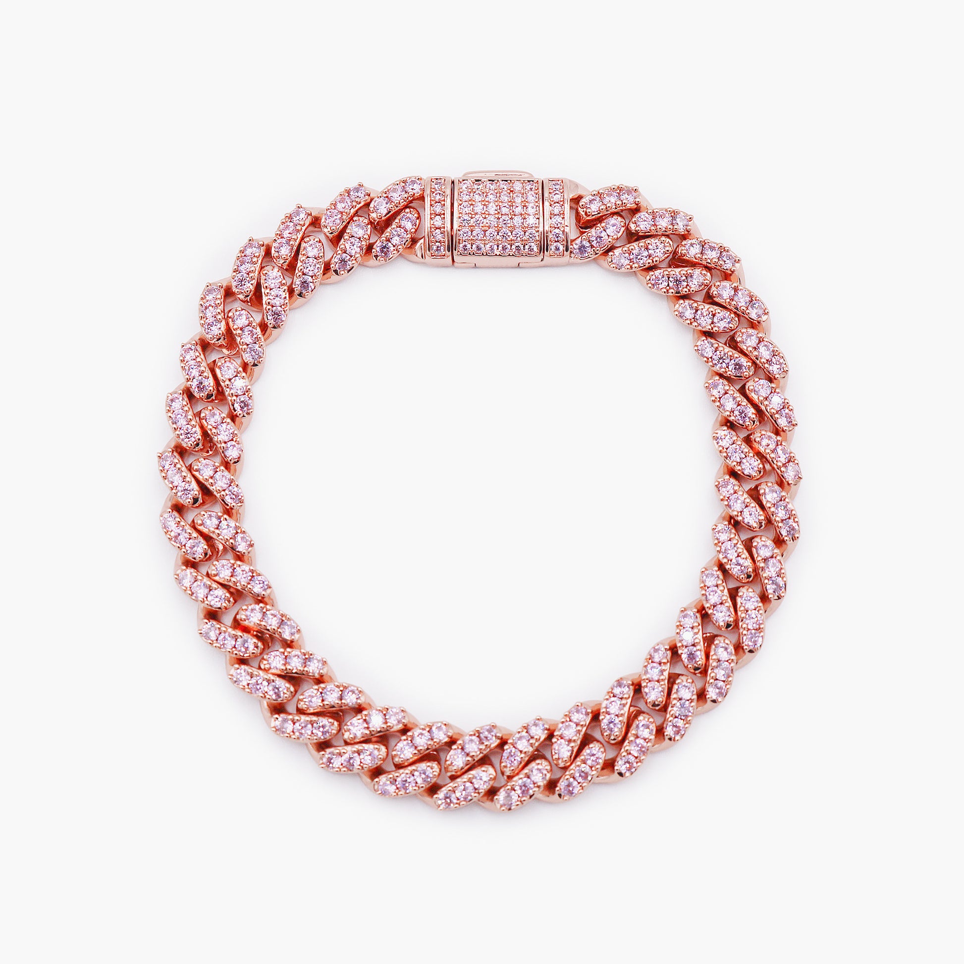8mm Pink Iced Out Cuban Bracelet - Rose Gold