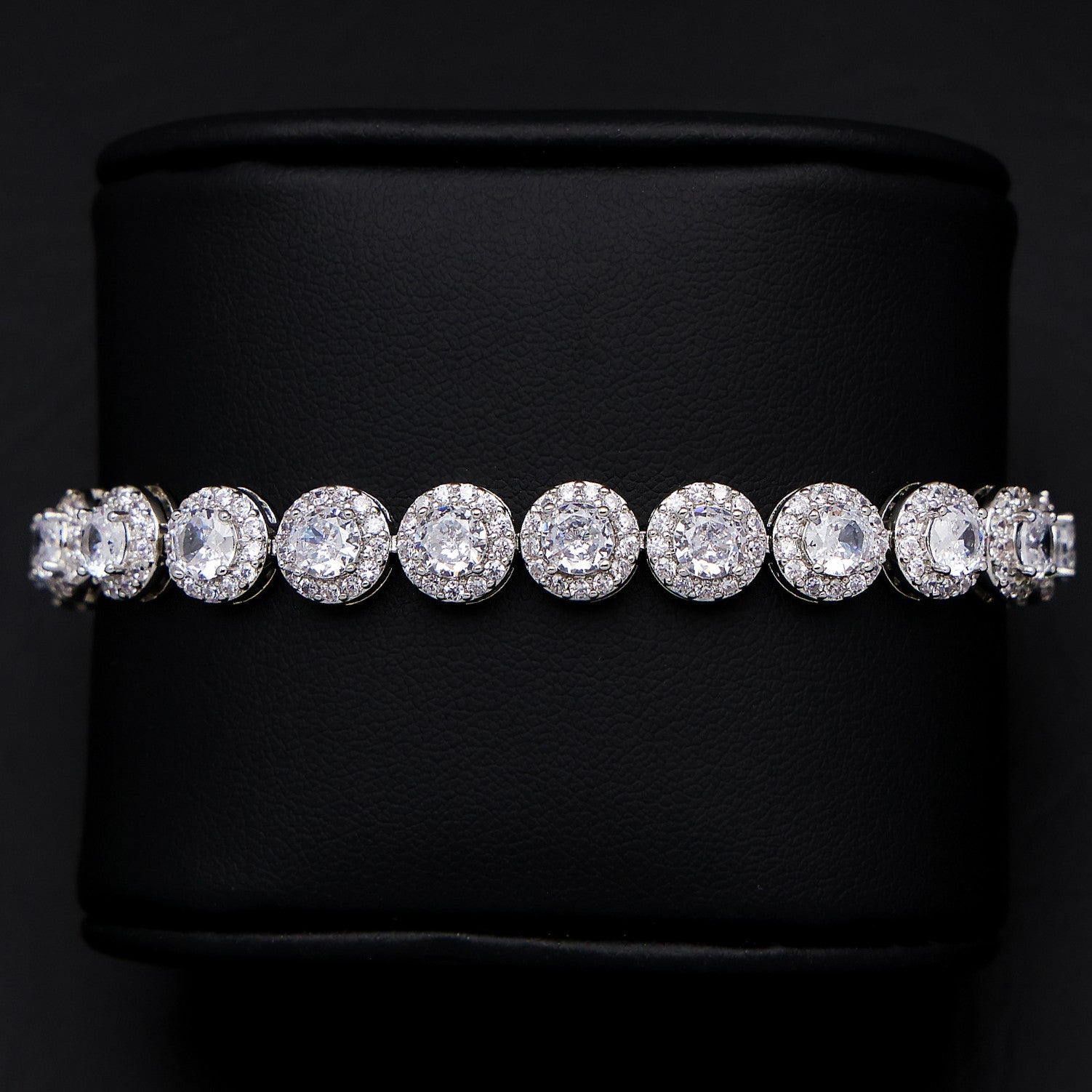 8mm Round Clustered Tennis Bracelet - 925 Silver