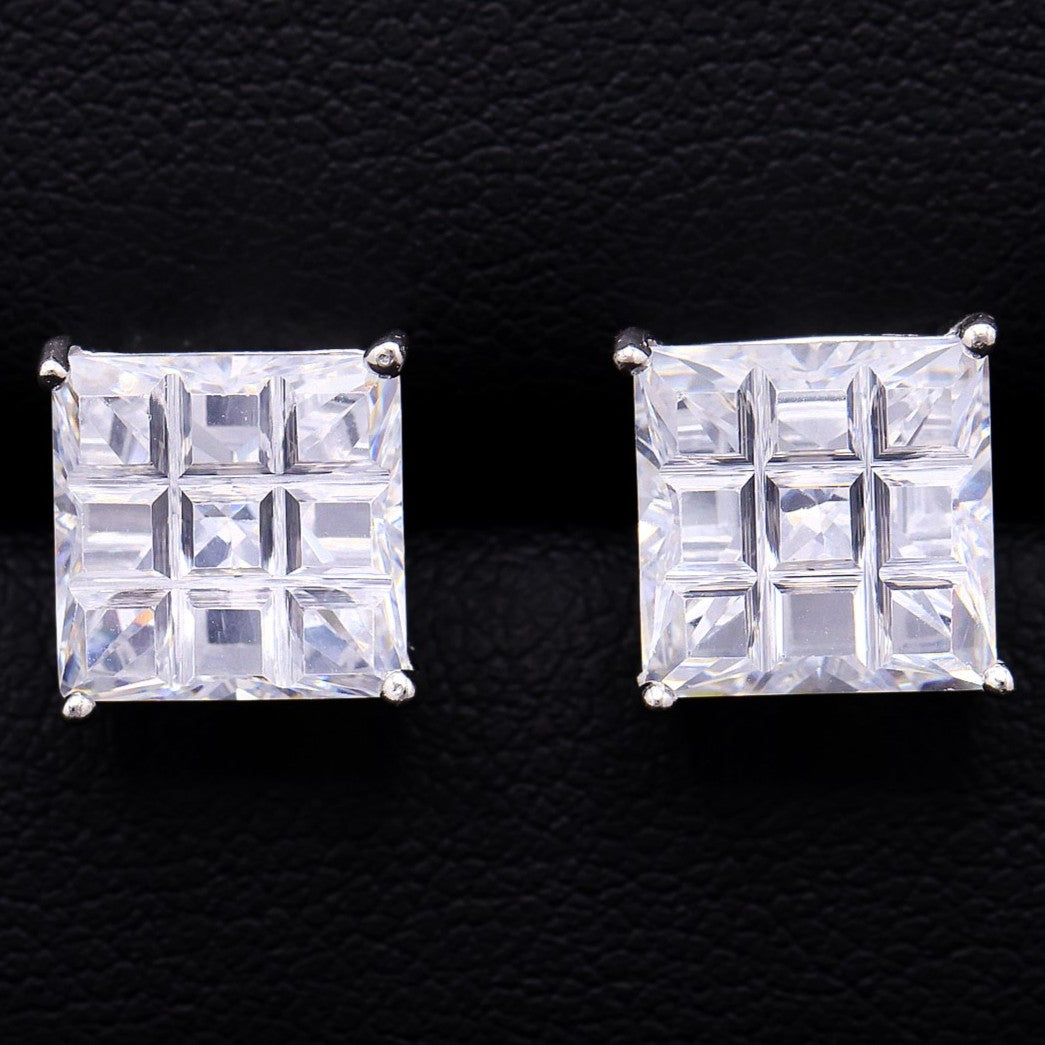 9mm Square Invisible Cut Stud Earrings - 925 Silver