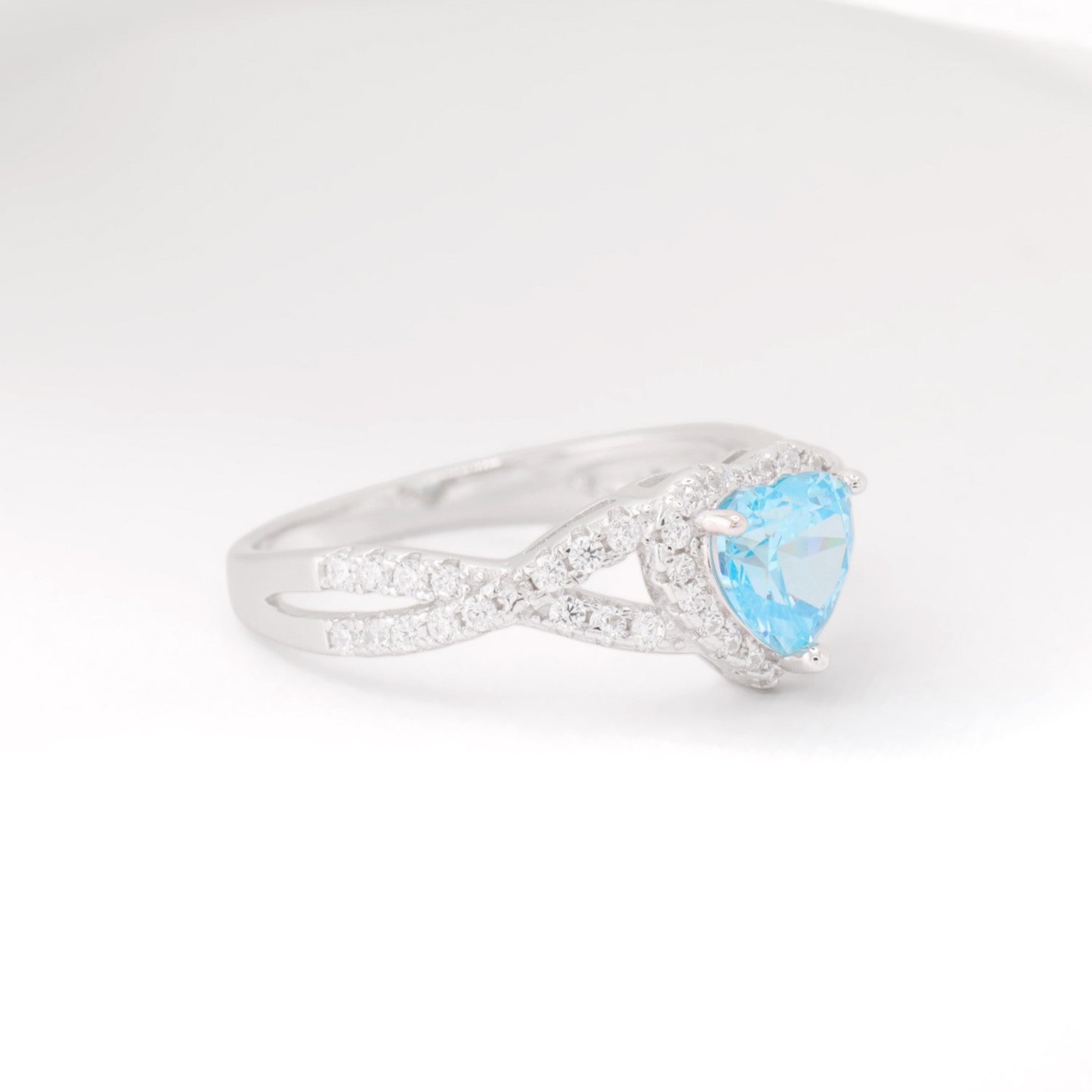 Aqua Blue Heart Infinity CZ Diamond Ring - 925 Silver