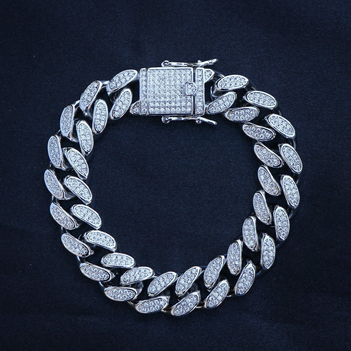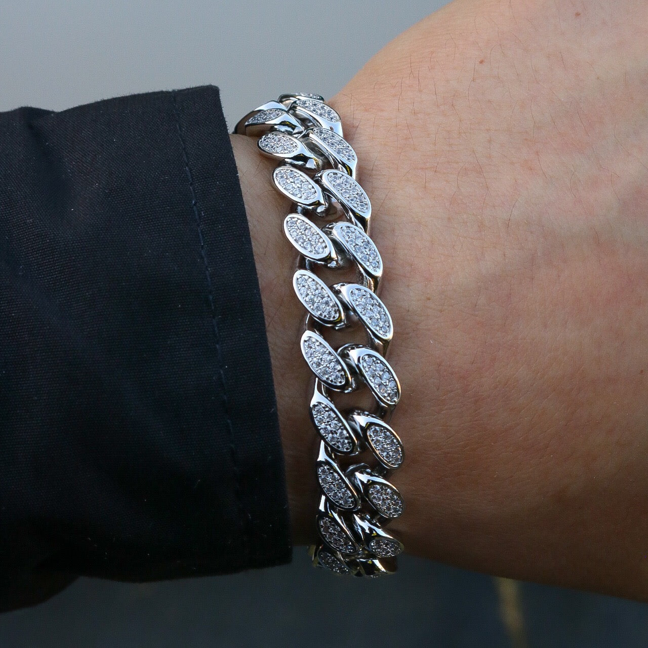 12mm Iced Out Miami Cuban Bracelet - White Gold