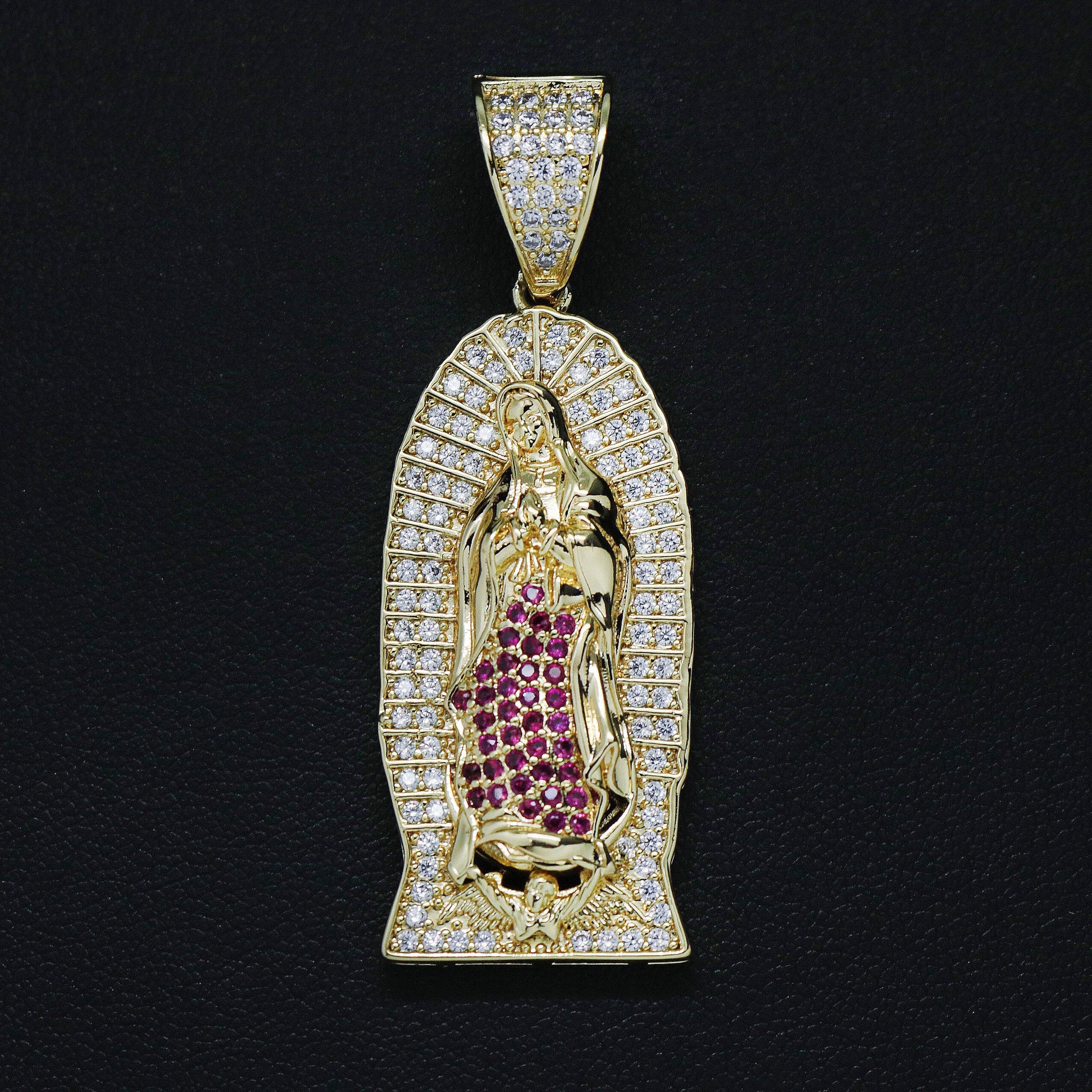 Fully Iced Lady of Guadalupe Pendant - Gold