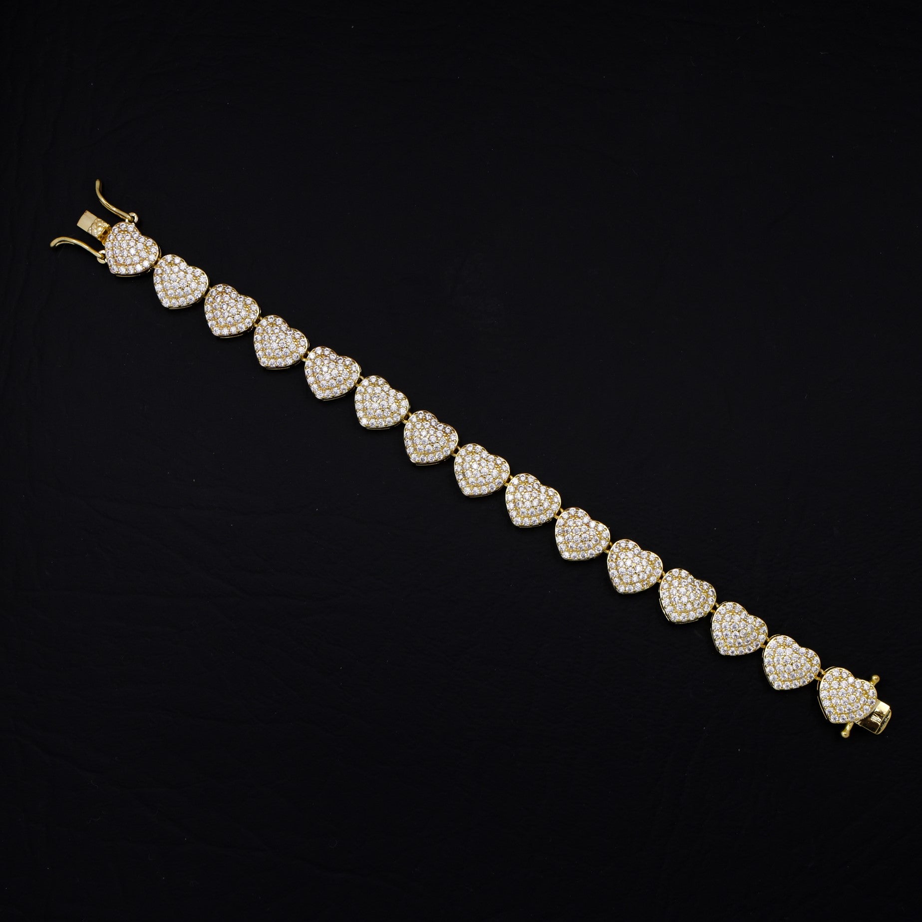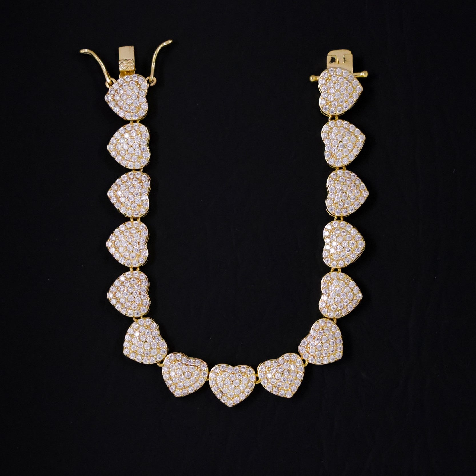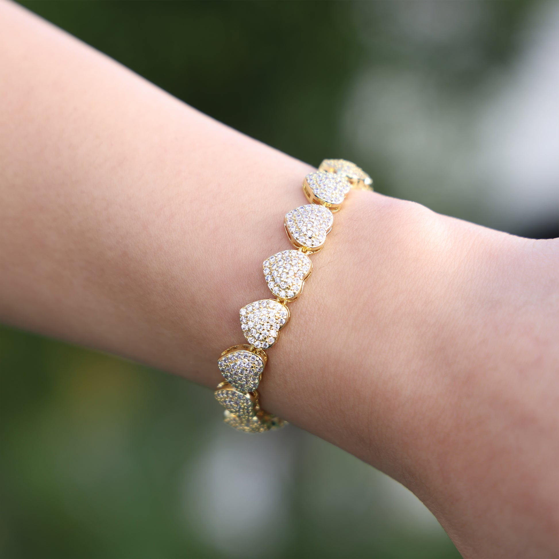 Fully Iced Out Heart Bracelet - Gold