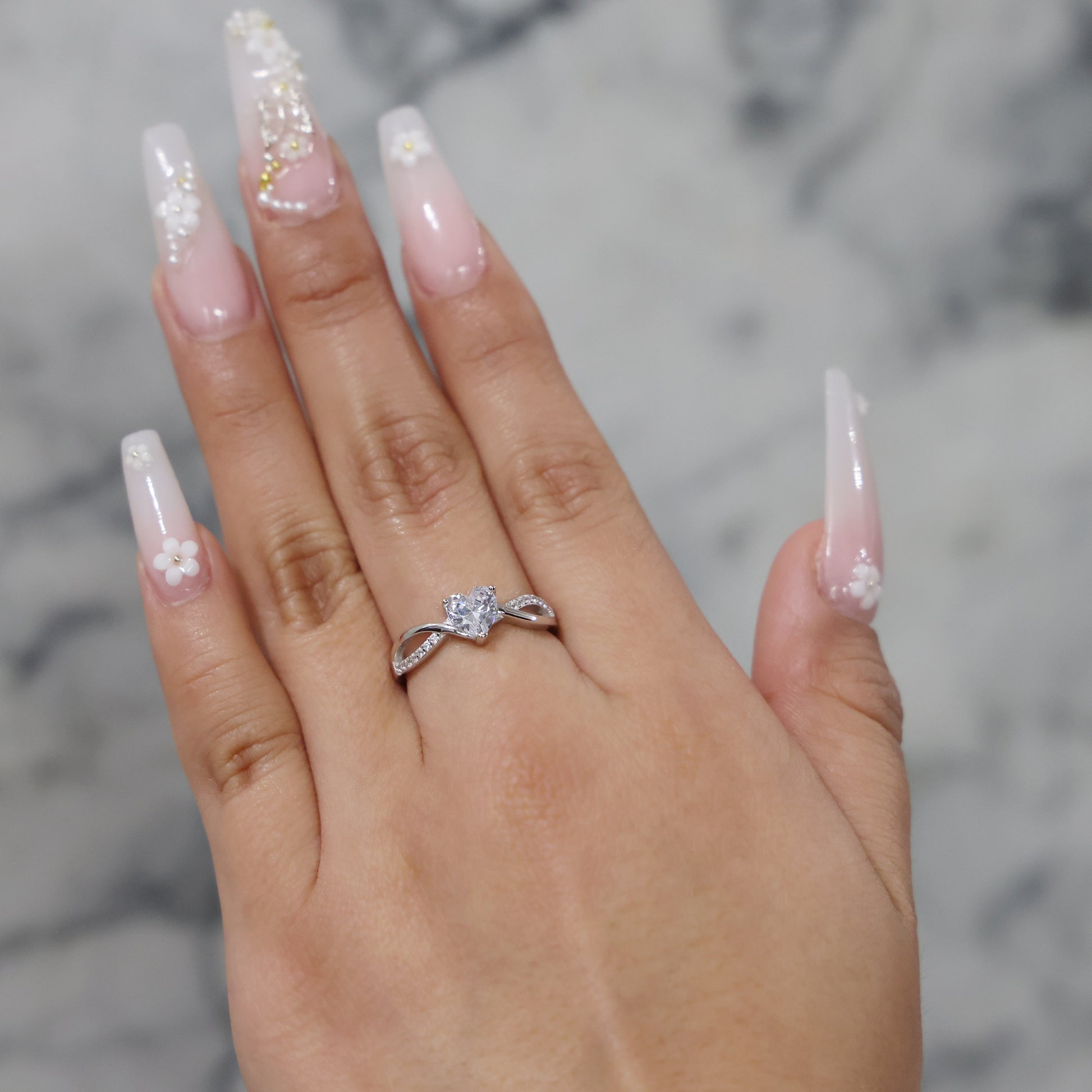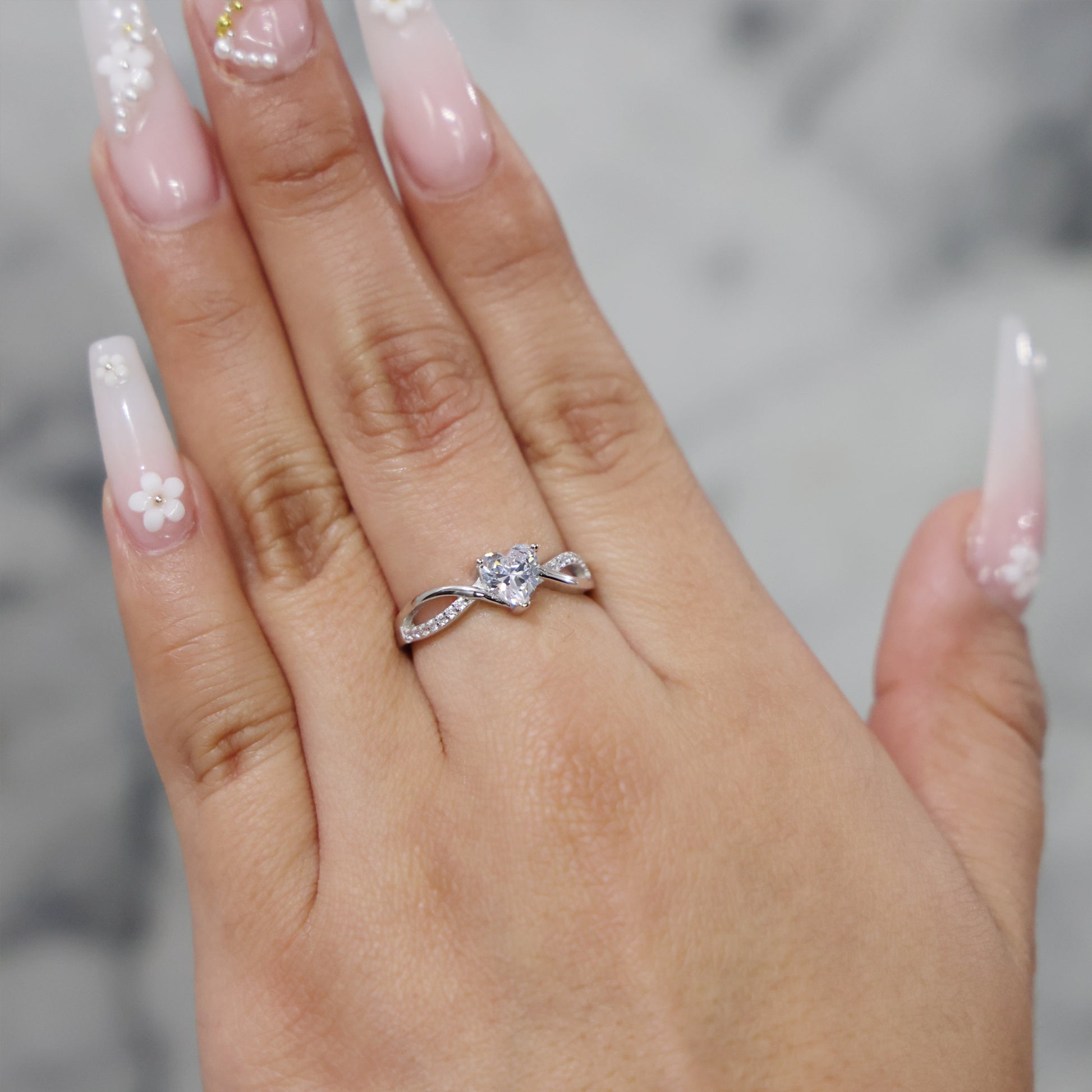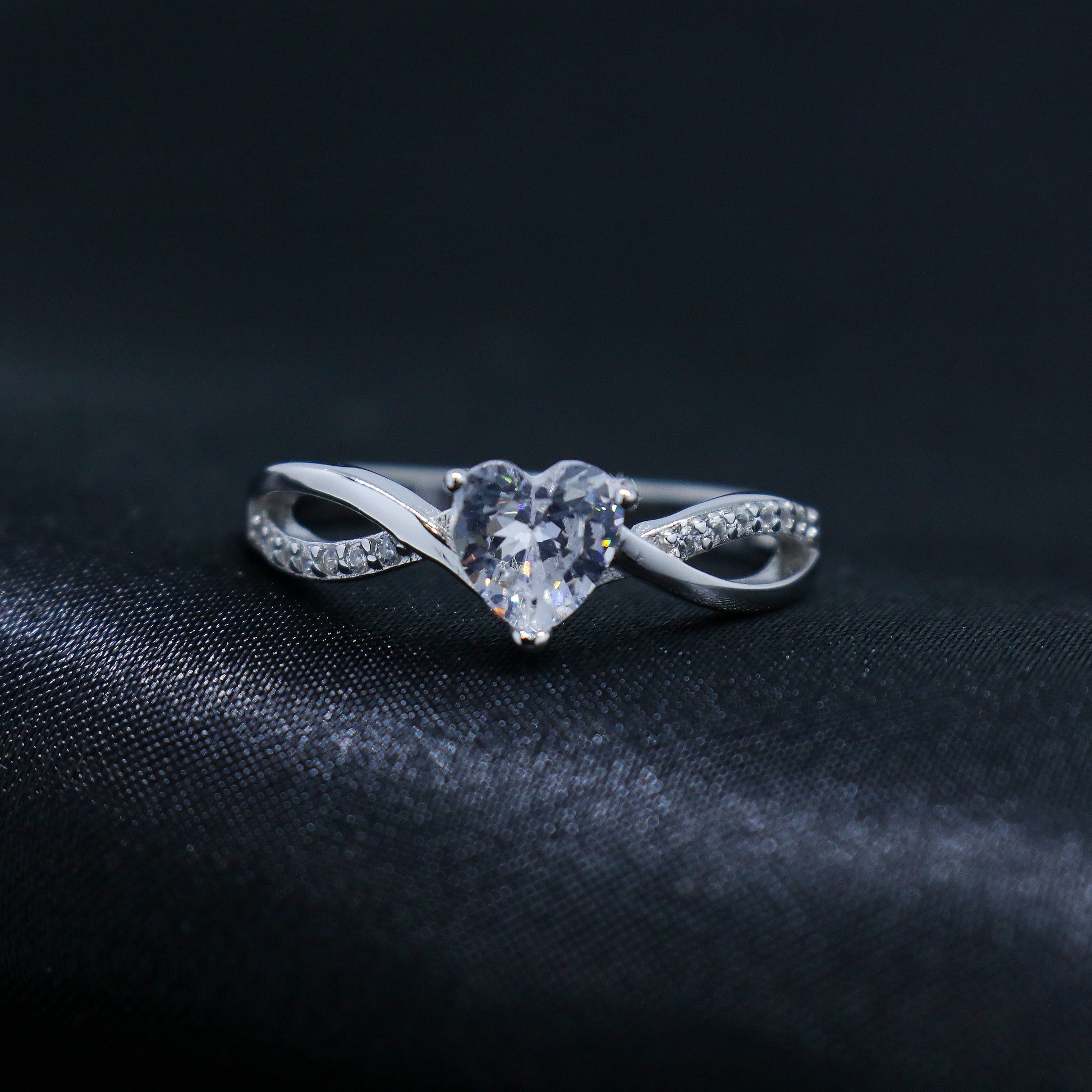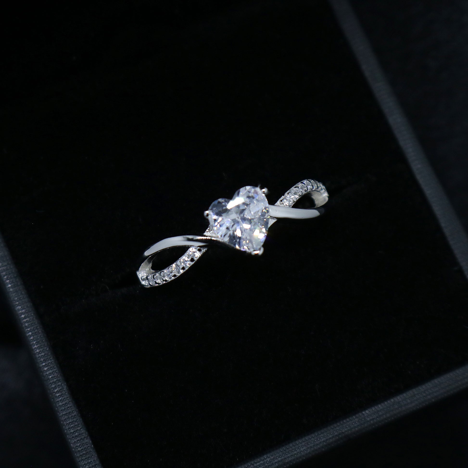 Half Iced Heart Cut Infinity Ring - 925 Silver