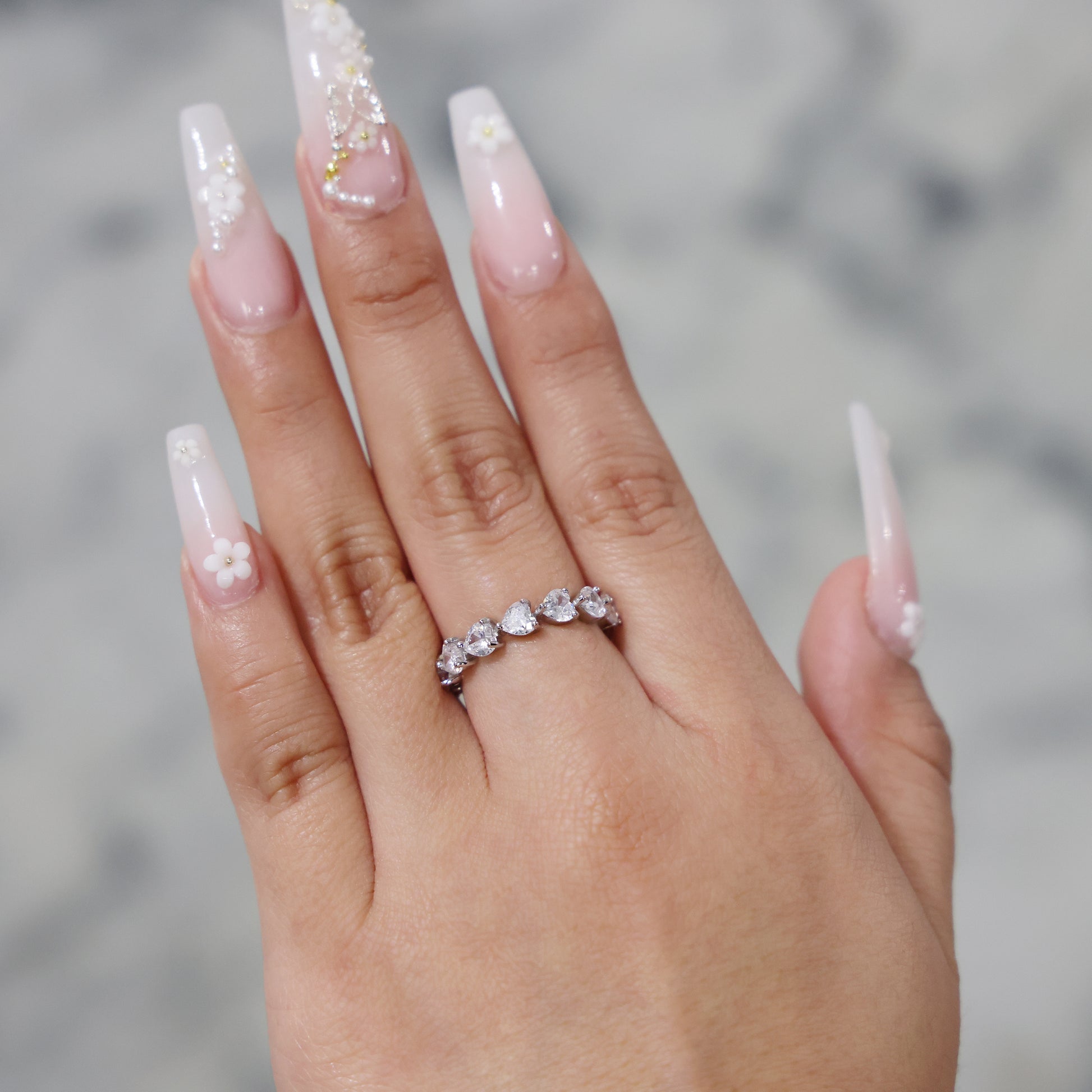 Heart CZ Diamond Eternity Band Ring - 925 Silver