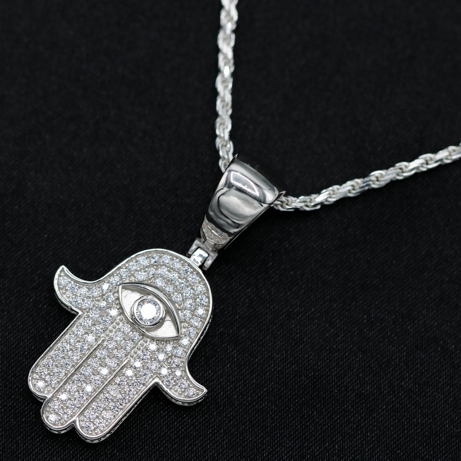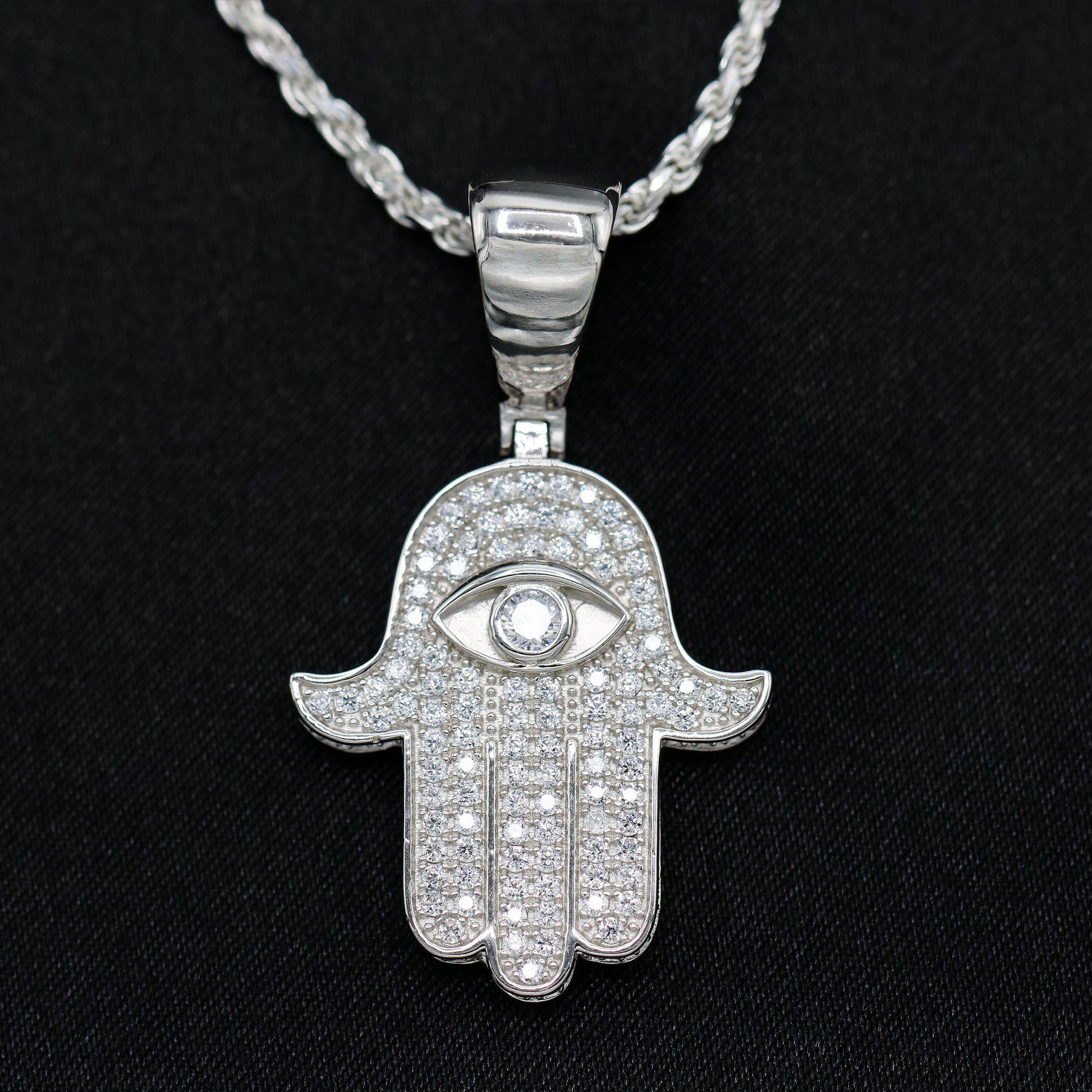 Iced Hamsah Pendant - 925 Silver
