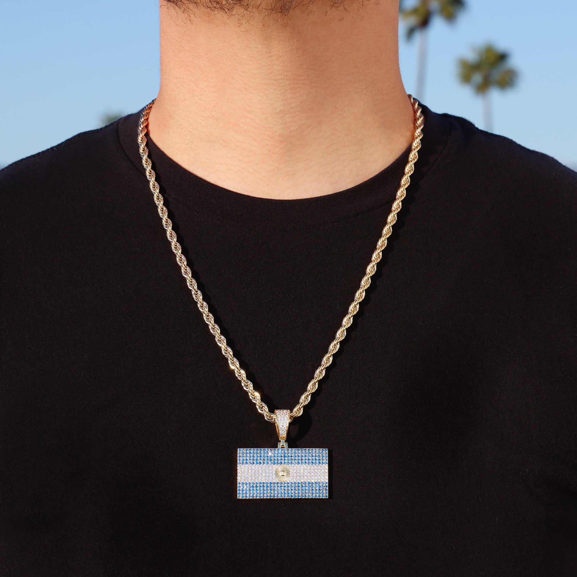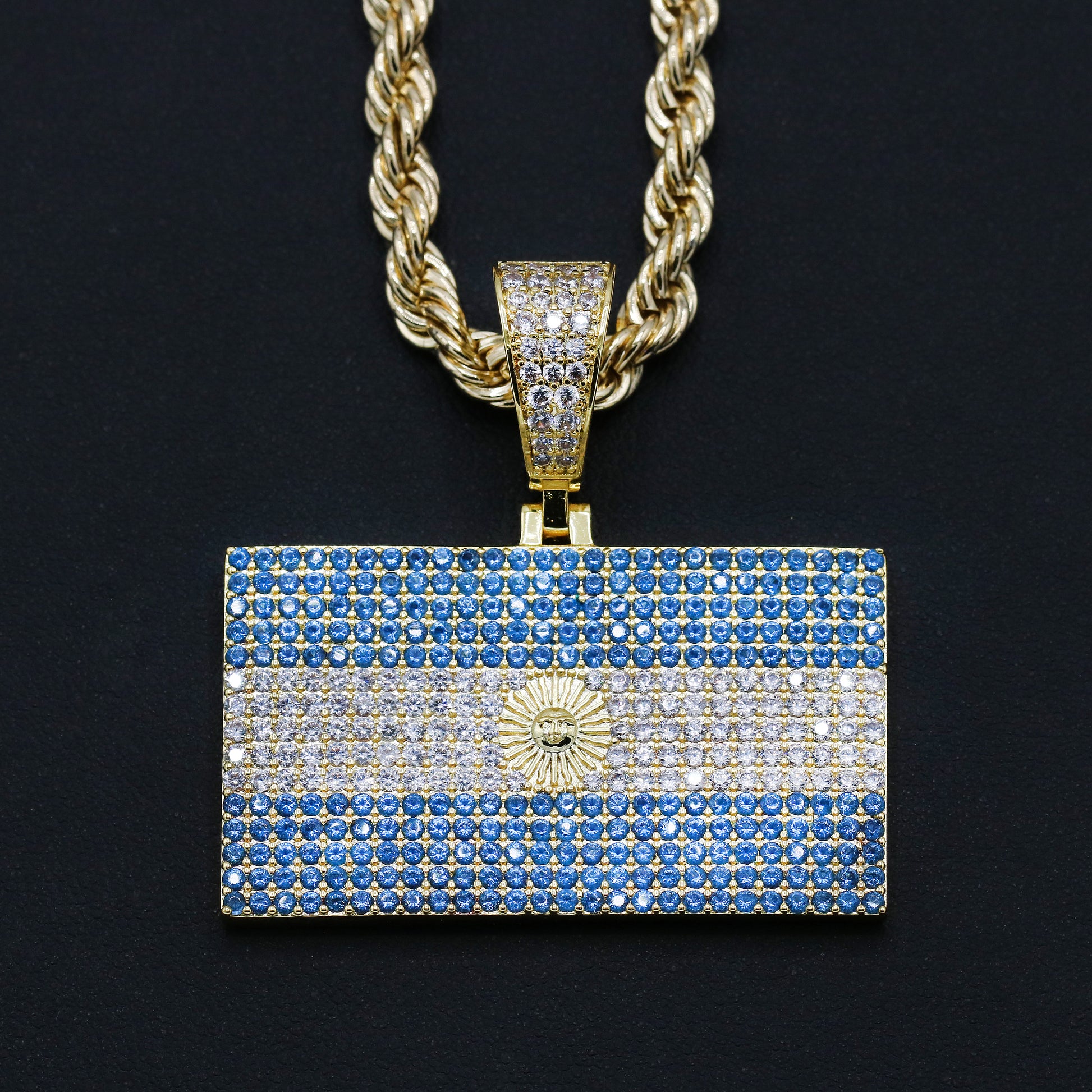 Iced out Argentina Flag Pendant - Gold