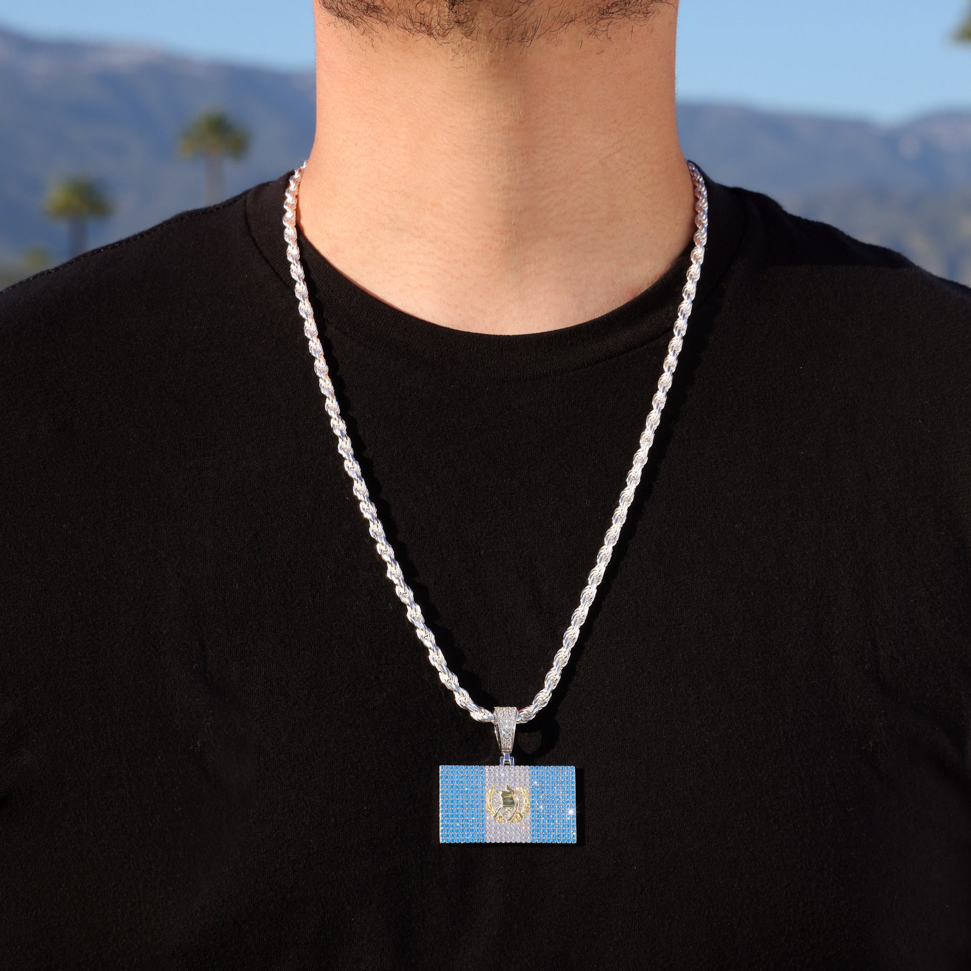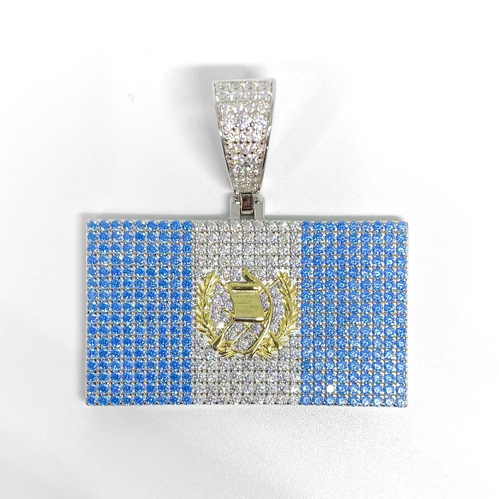 Iced Out Guatemala Flag Pendant - 925 Silver