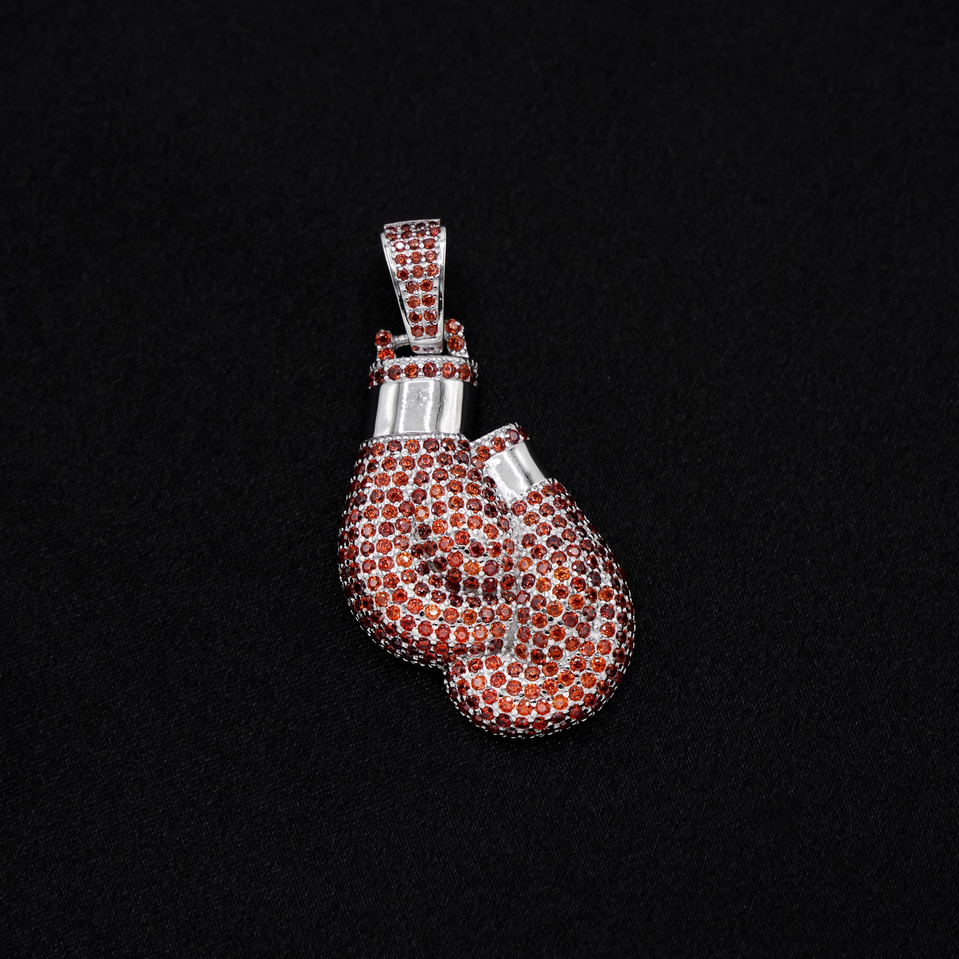 Iced Out Red Boxing Gloves Pendant - 925 Silver