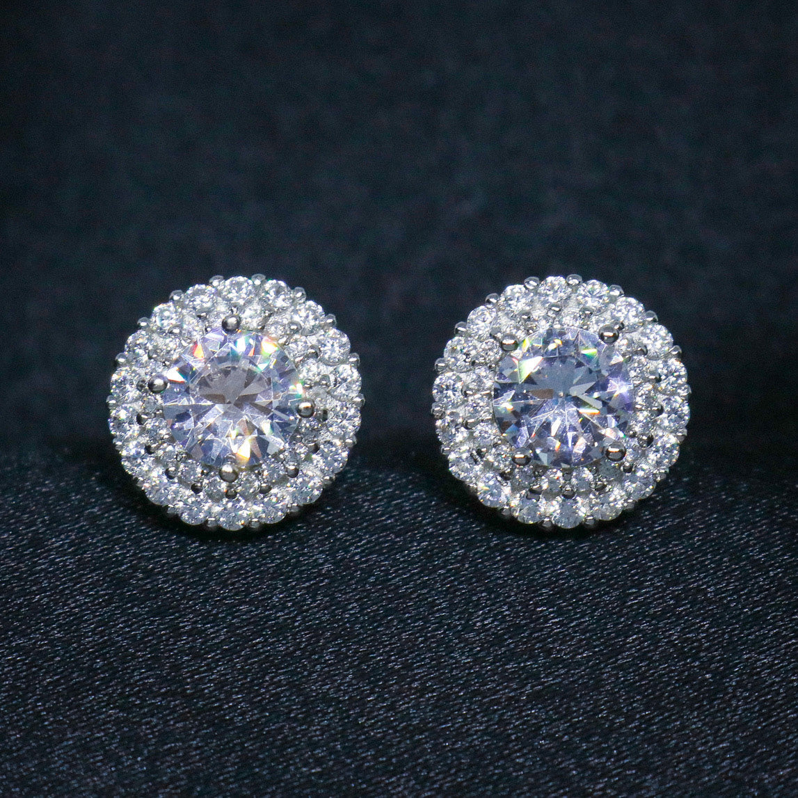 Iced Out Round Diamond Stud Earrings - 925 Silver