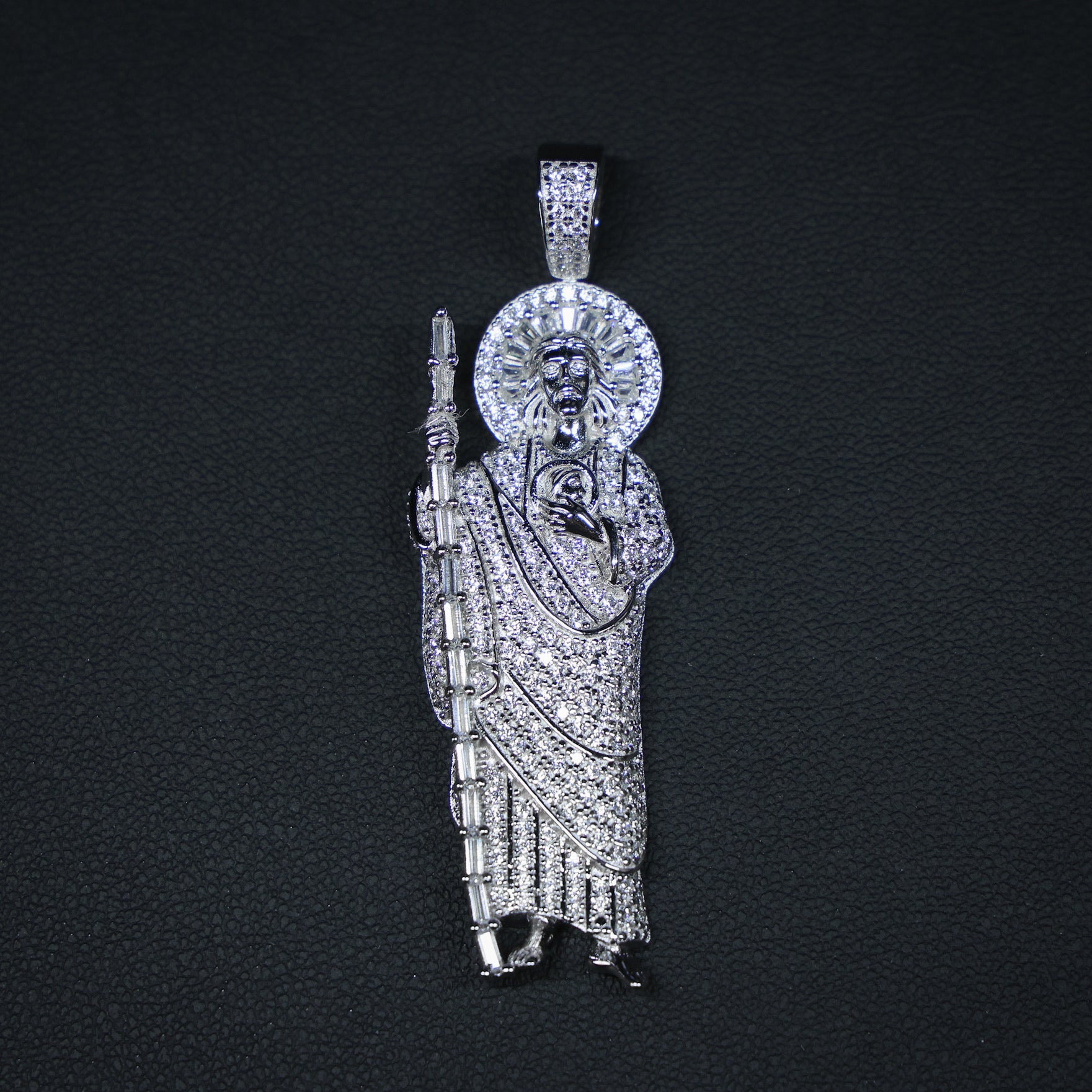 Moissanite Fully Iced Baguette San Judas Pendant - 925 Silver