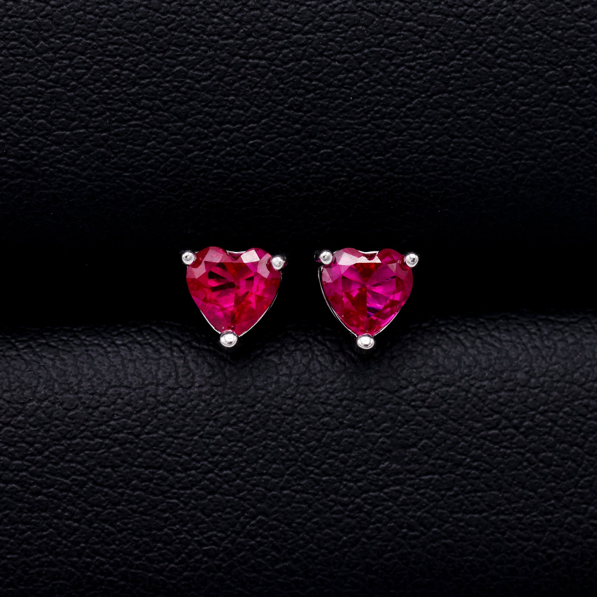 5mm Heart Cut Ruby CZ Diamond Stud Earrings - 925 Silver