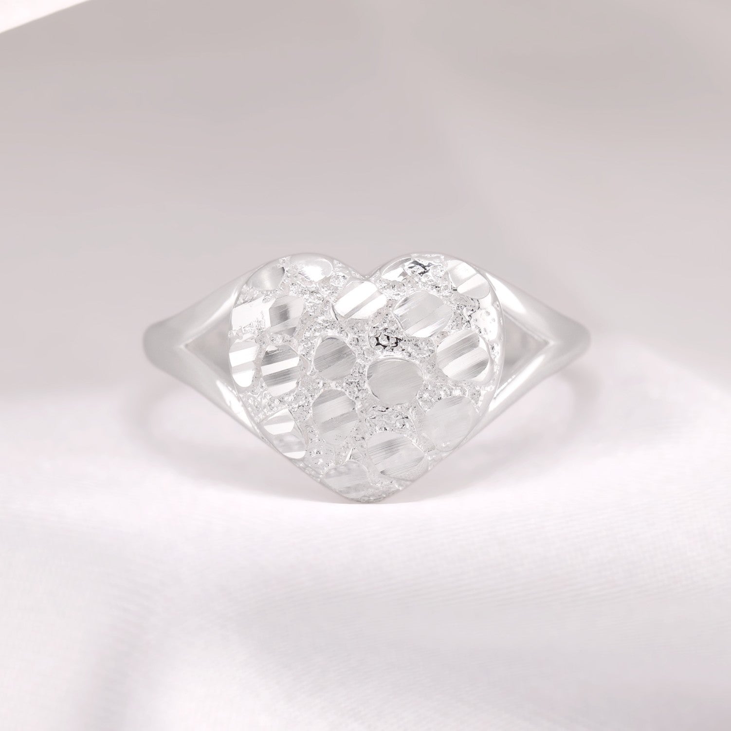 Puffed Heart Nugget Ring - 925 Silver