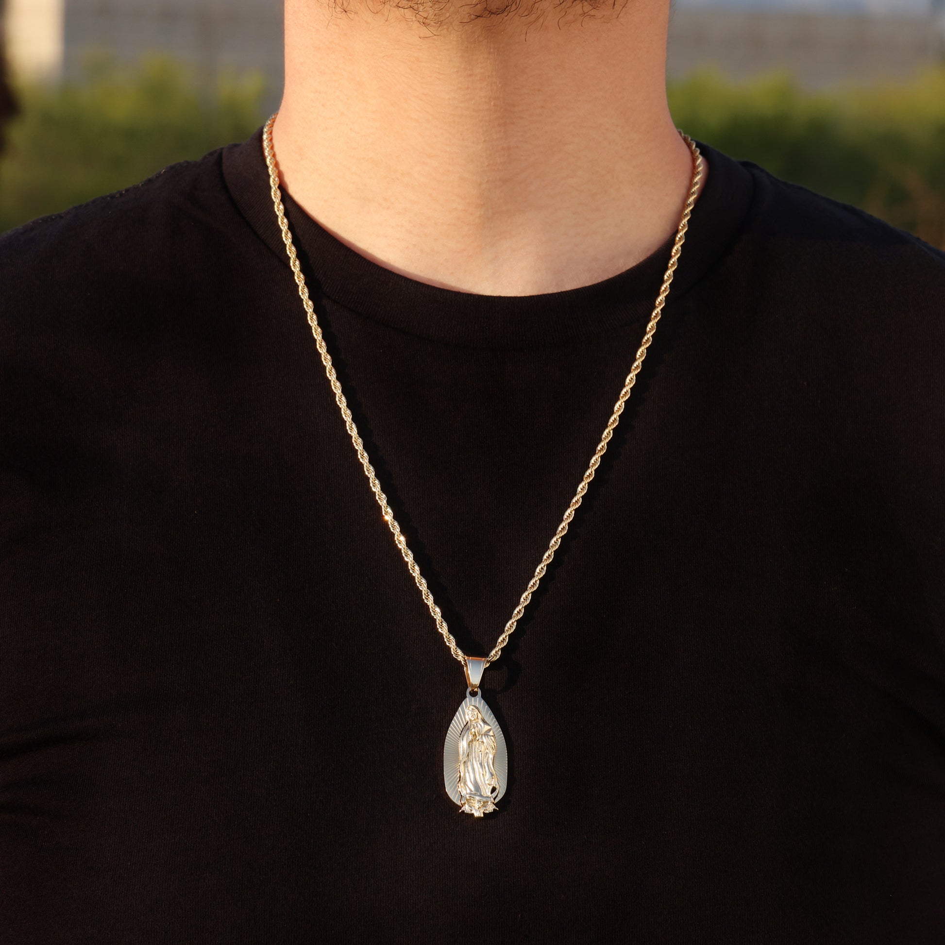 The Virgin Mary and necklace look amazing… nice size on the Virgin Mary for the prize I paid… I’ll be buying more for sure… thank you Huerta jewelry