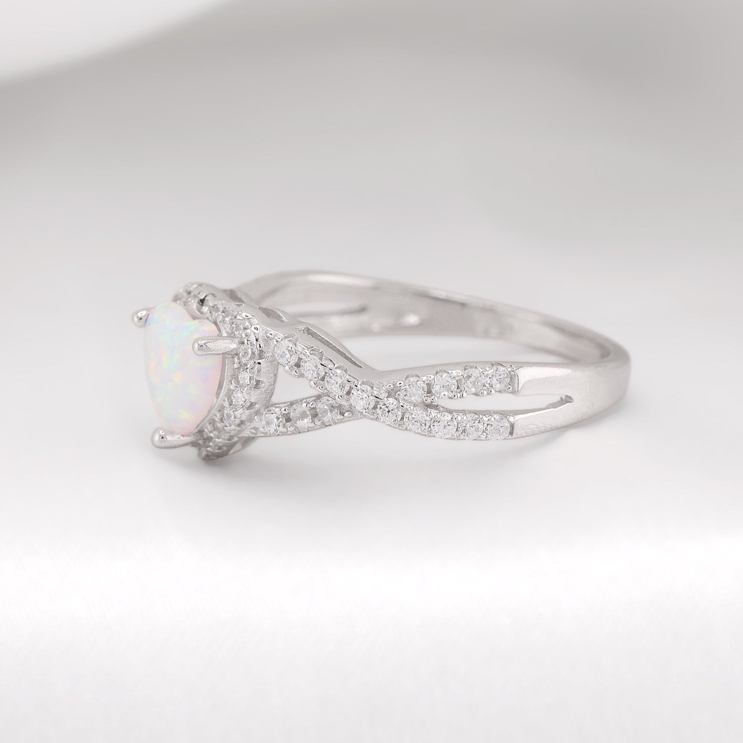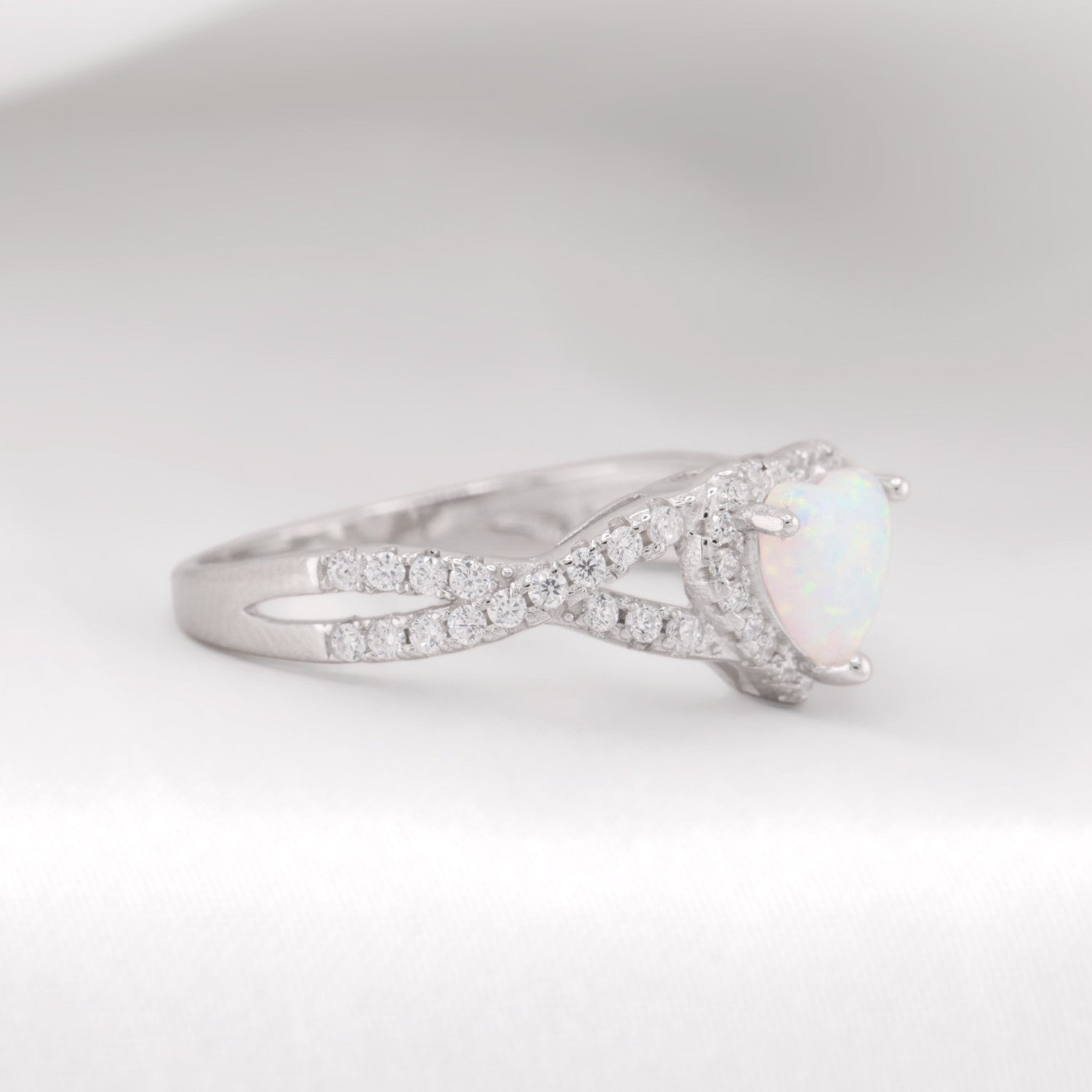 White Lab Opal Heart Infinity Diamond Ring - 925 Silver
