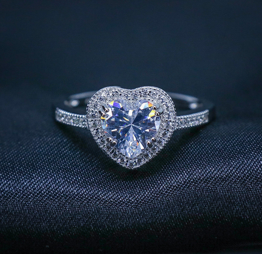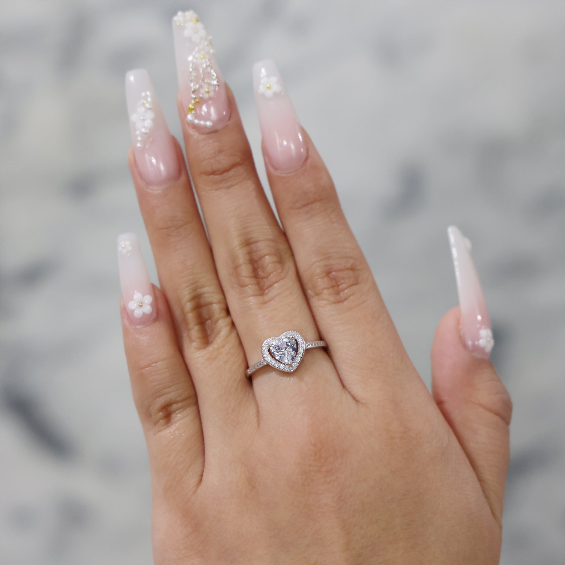 Halo Heart Cut CZ Diamond Ring - 925 Silver
