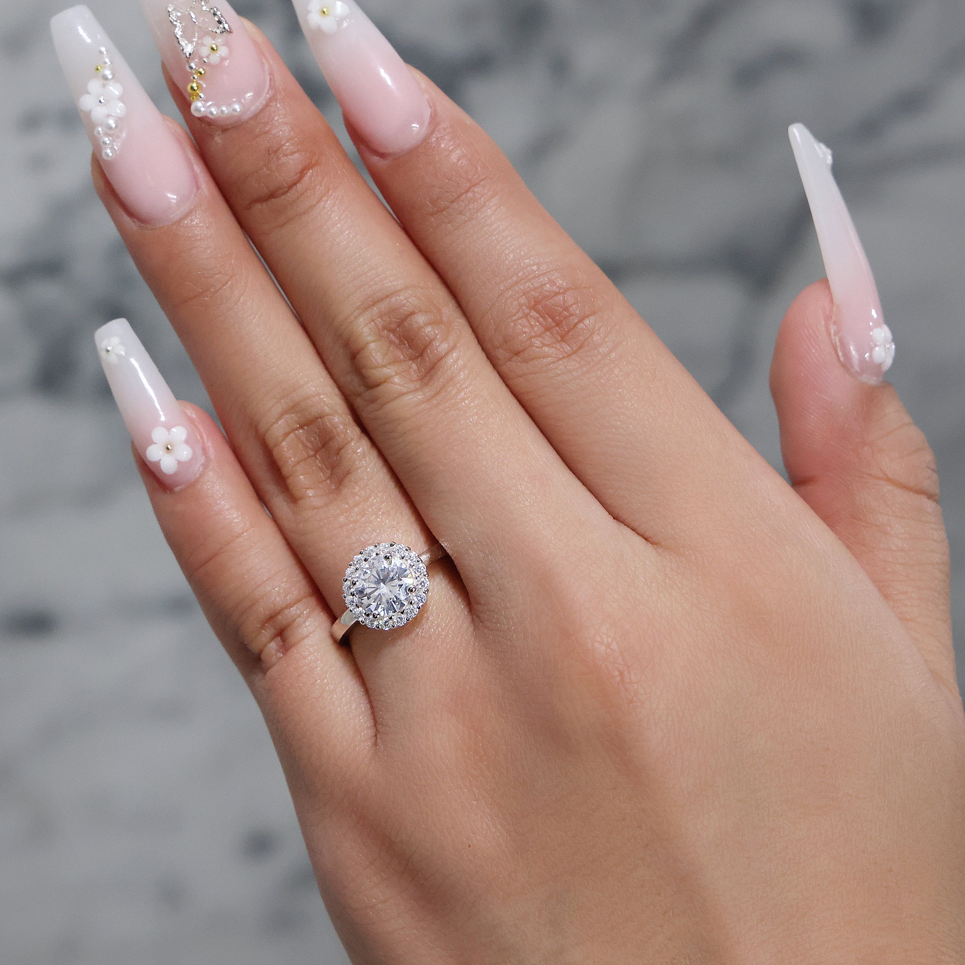 Halo Round Cut CZ Diamond Ring - 925 Silver
