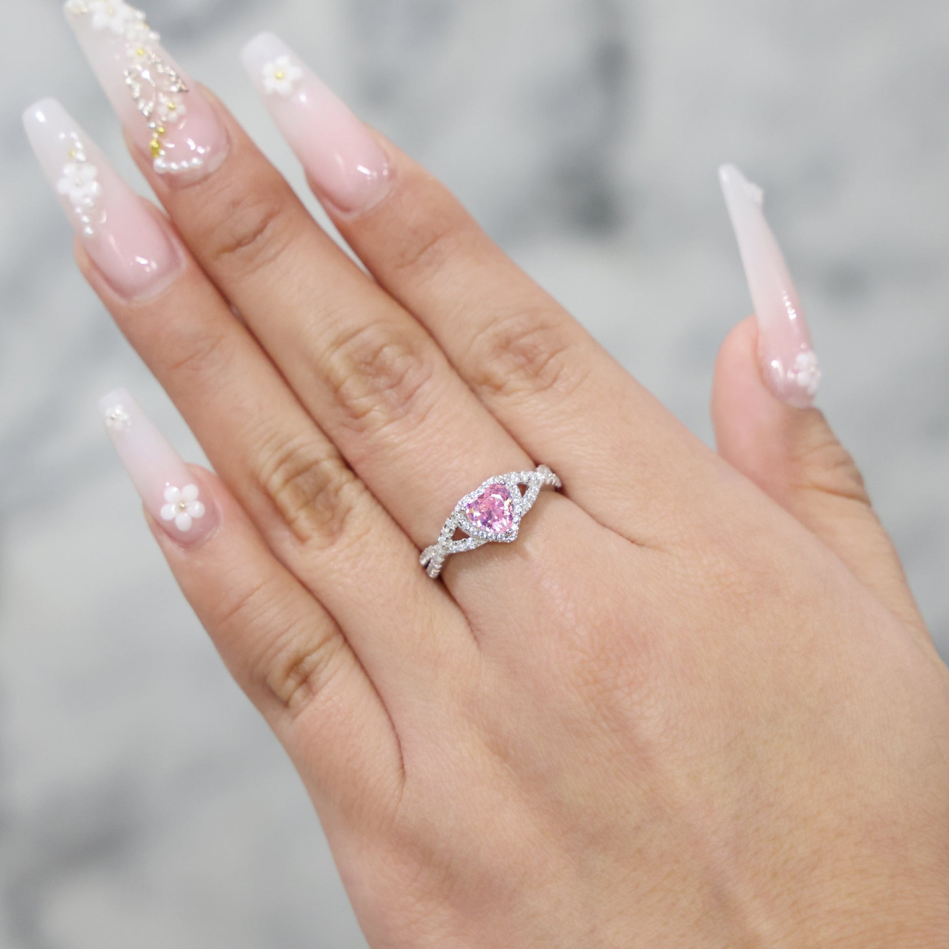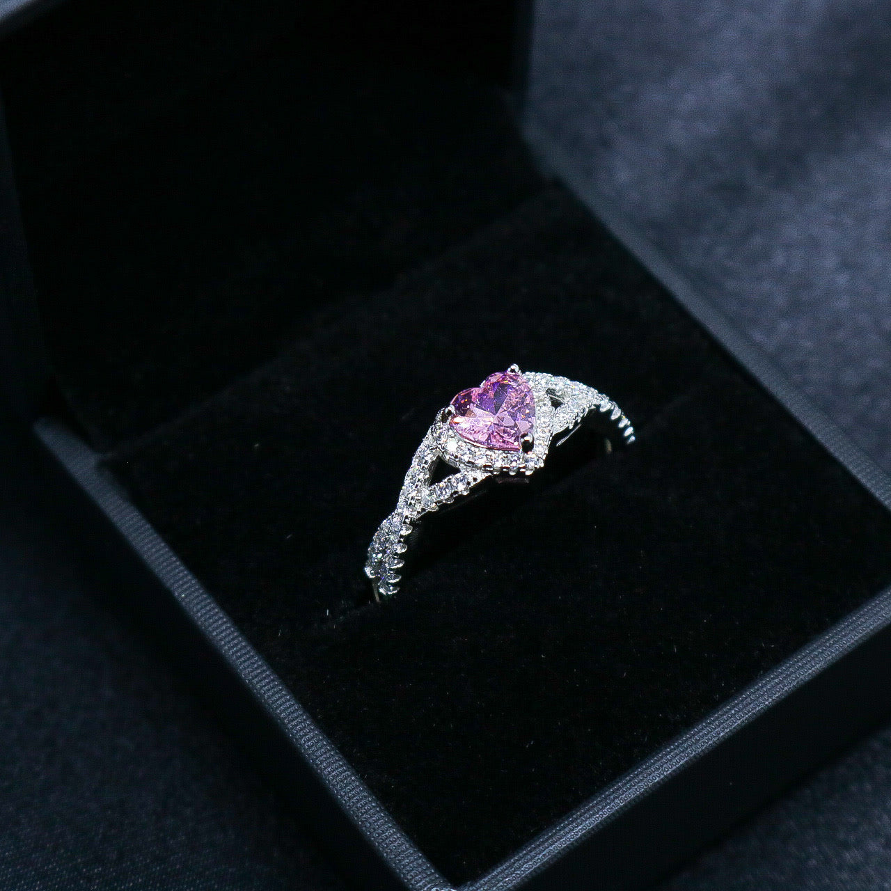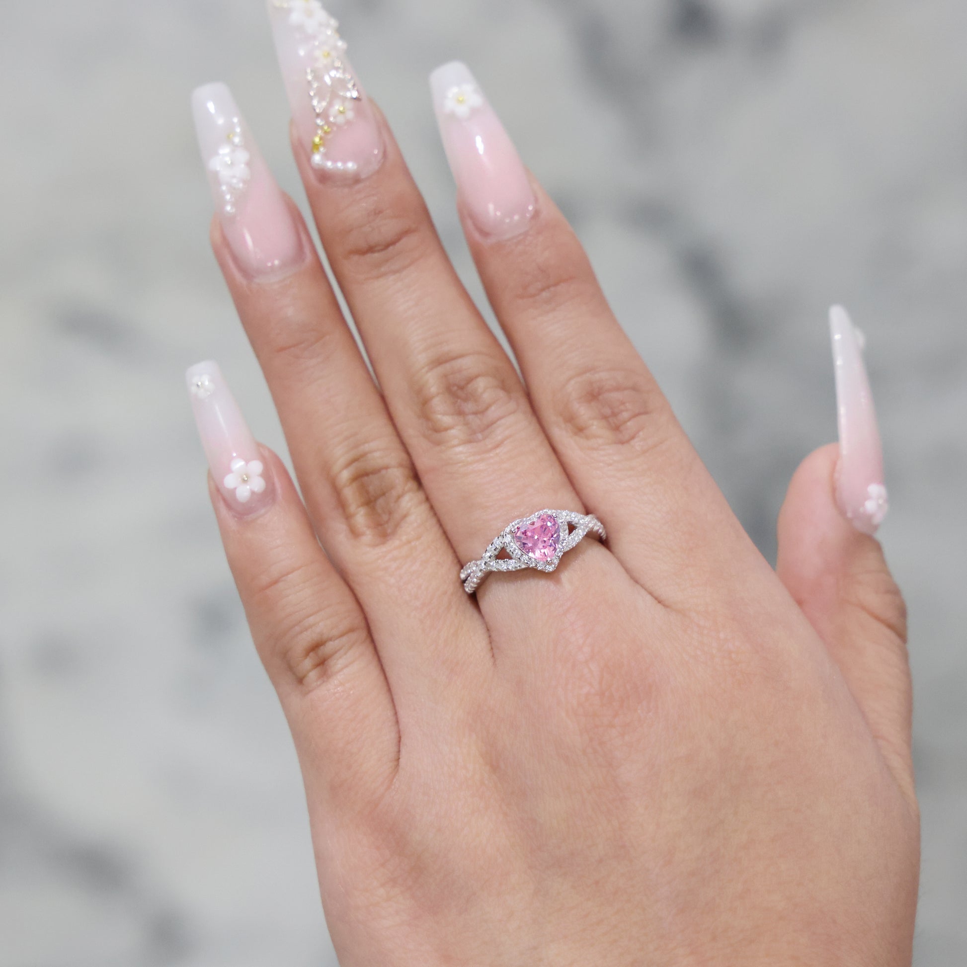 Pink Heart Infinity CZ Diamond Ring - 925 Silver