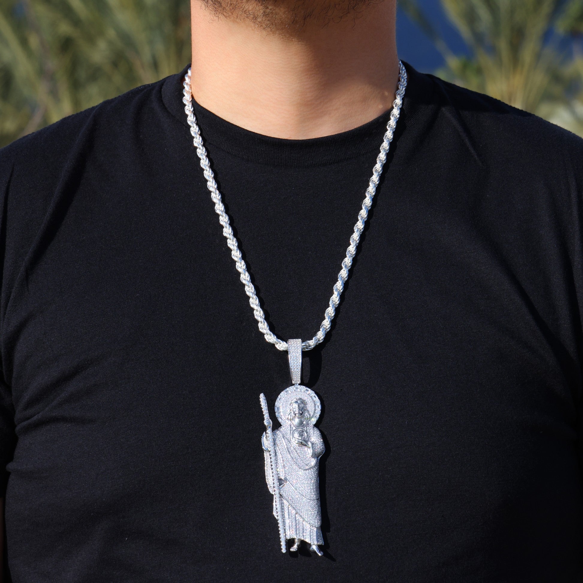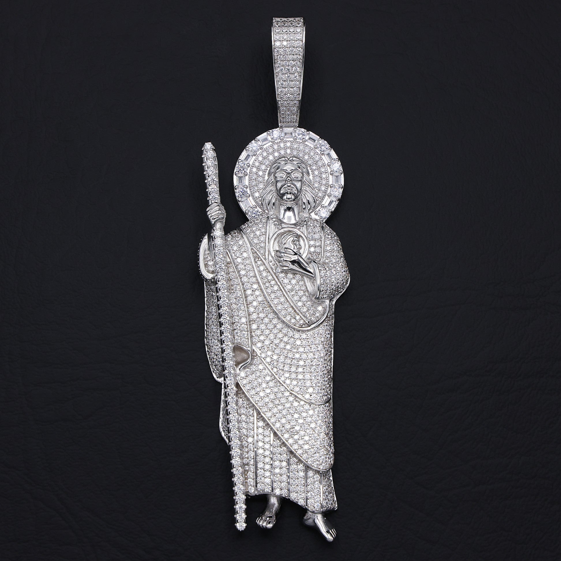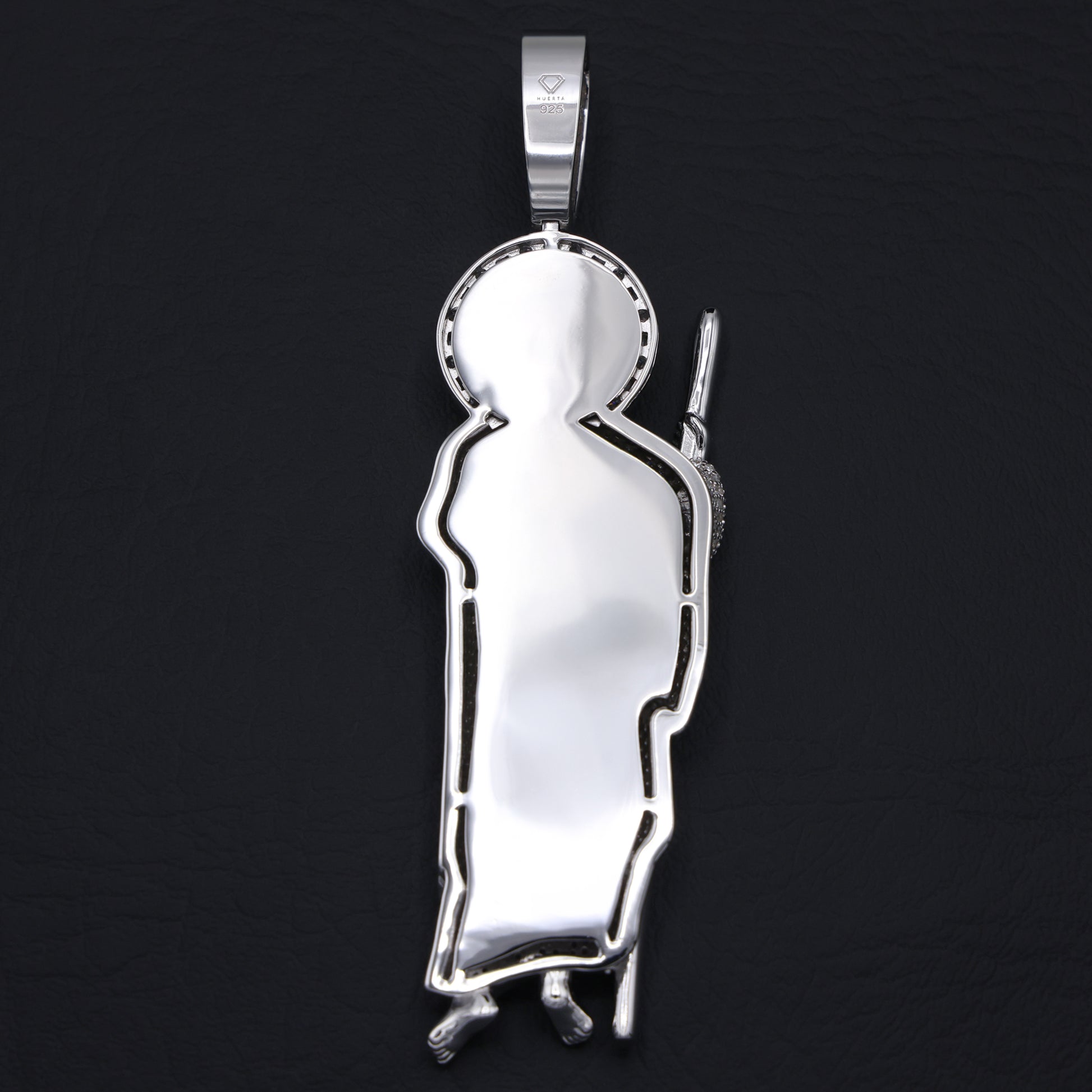 XL Fully Iced Moissanite San Judas Pendant - 925 Silver