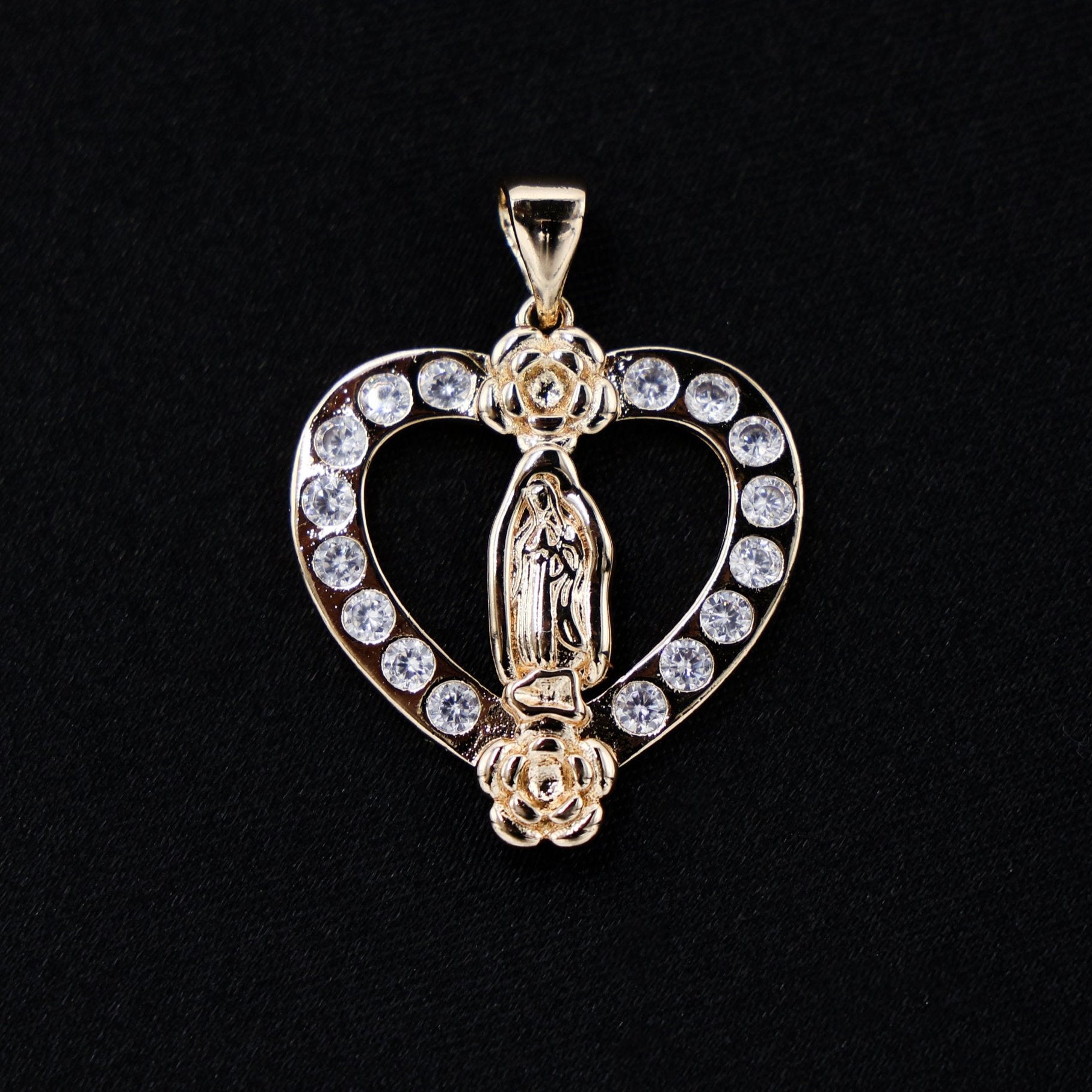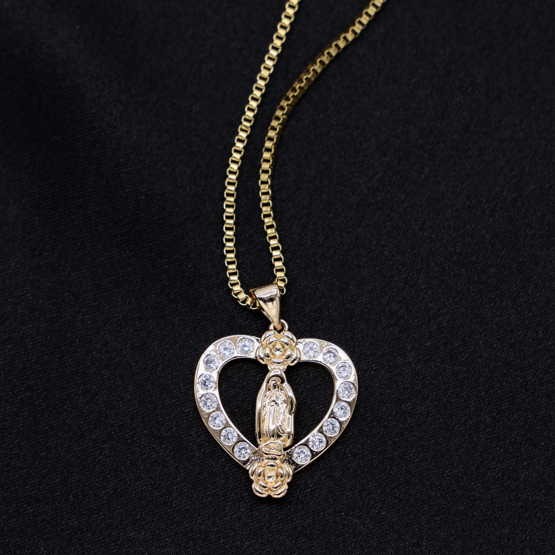 Iced Heart Virgin Mary Rose Neklace - Gold
