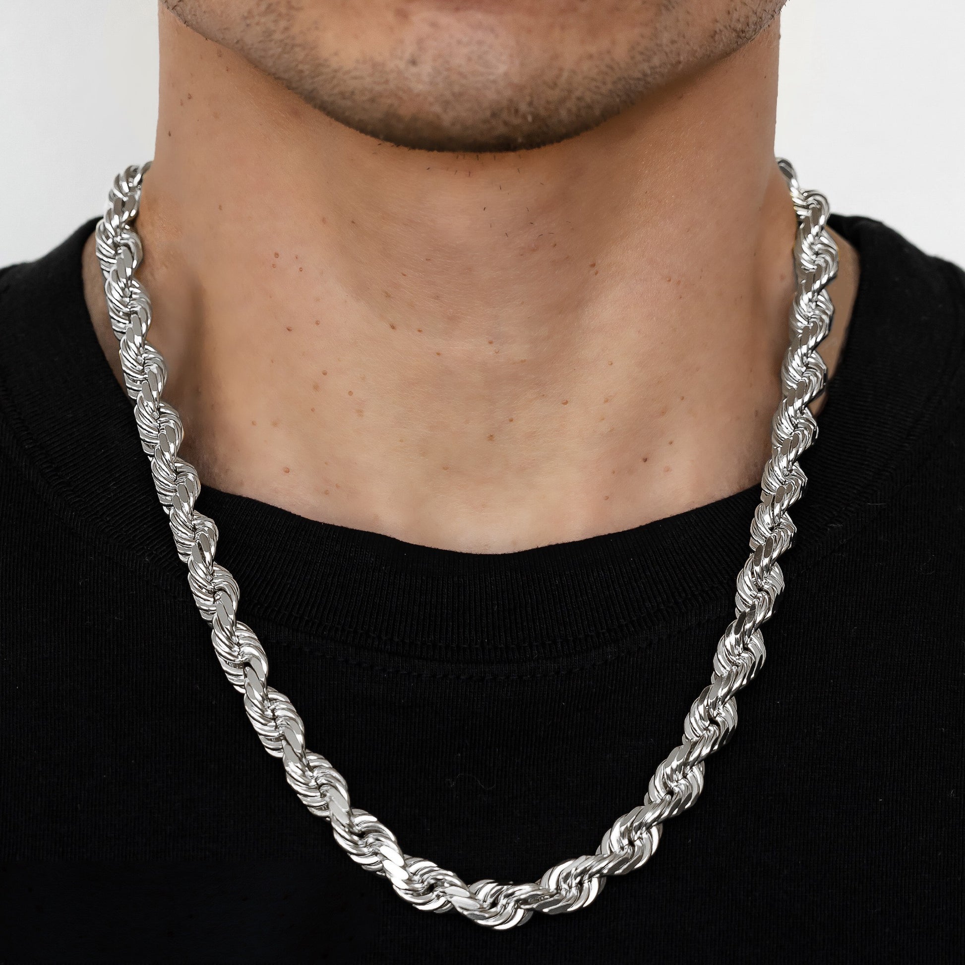 10mm Solid Diamond Cut Rope Chain - 14k White Gold
