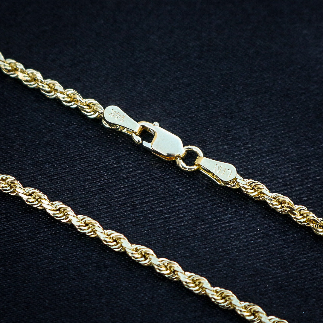 2.5mm Solid Diamond Cut Rope Chain - 14k Gold