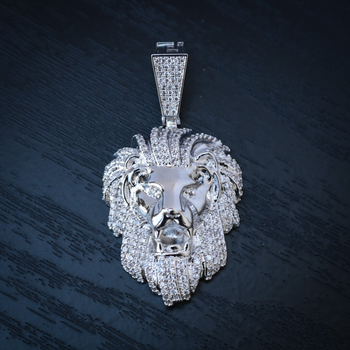 Iced out Lion Pendant - White Gold