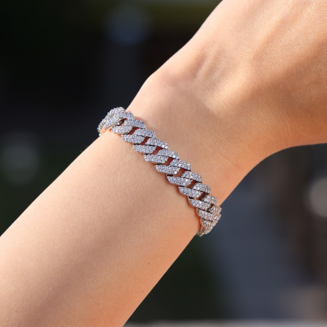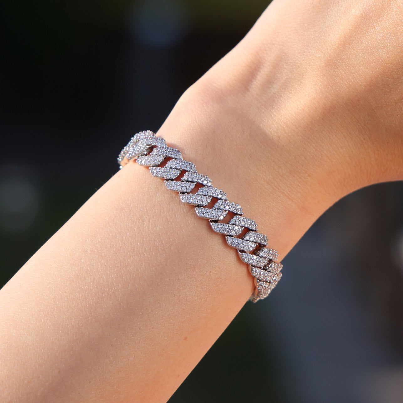 10mm Diamond Prong Link Cuban Bracelet - White Gold