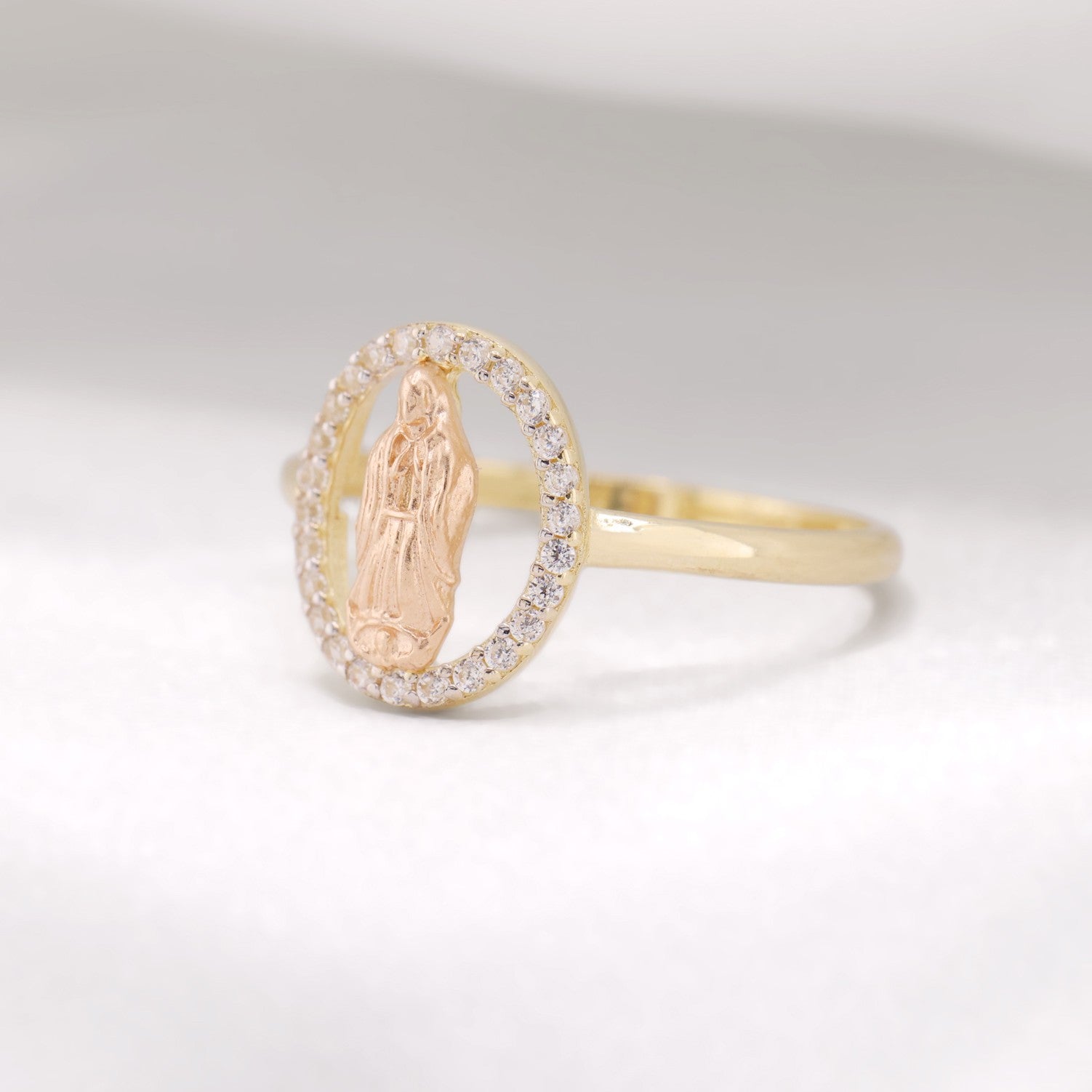 Iced 2-Tone Virgin Mary Ring - 14k Gold
