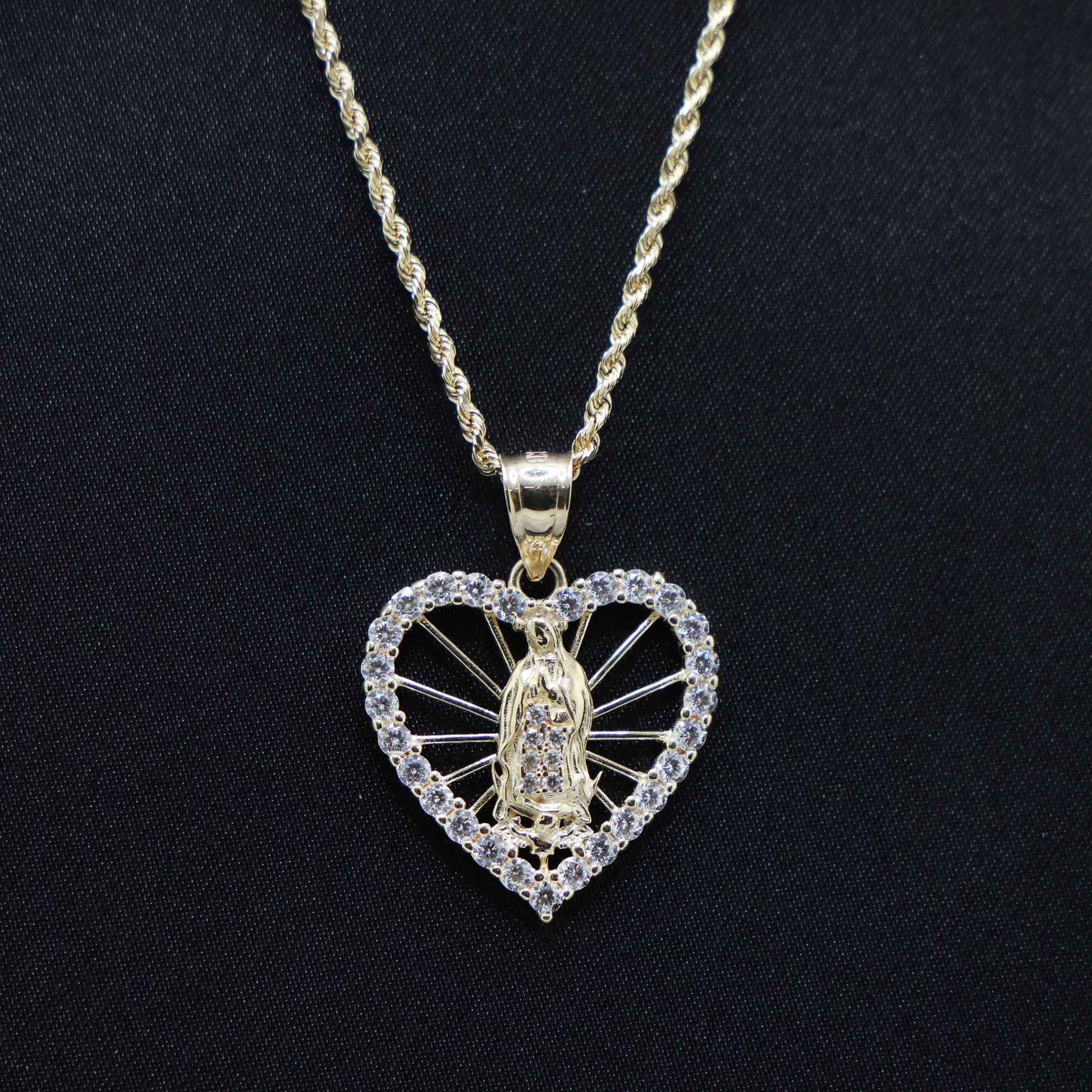 Iced Heart Virgin Mary Pendant - 14k Gold