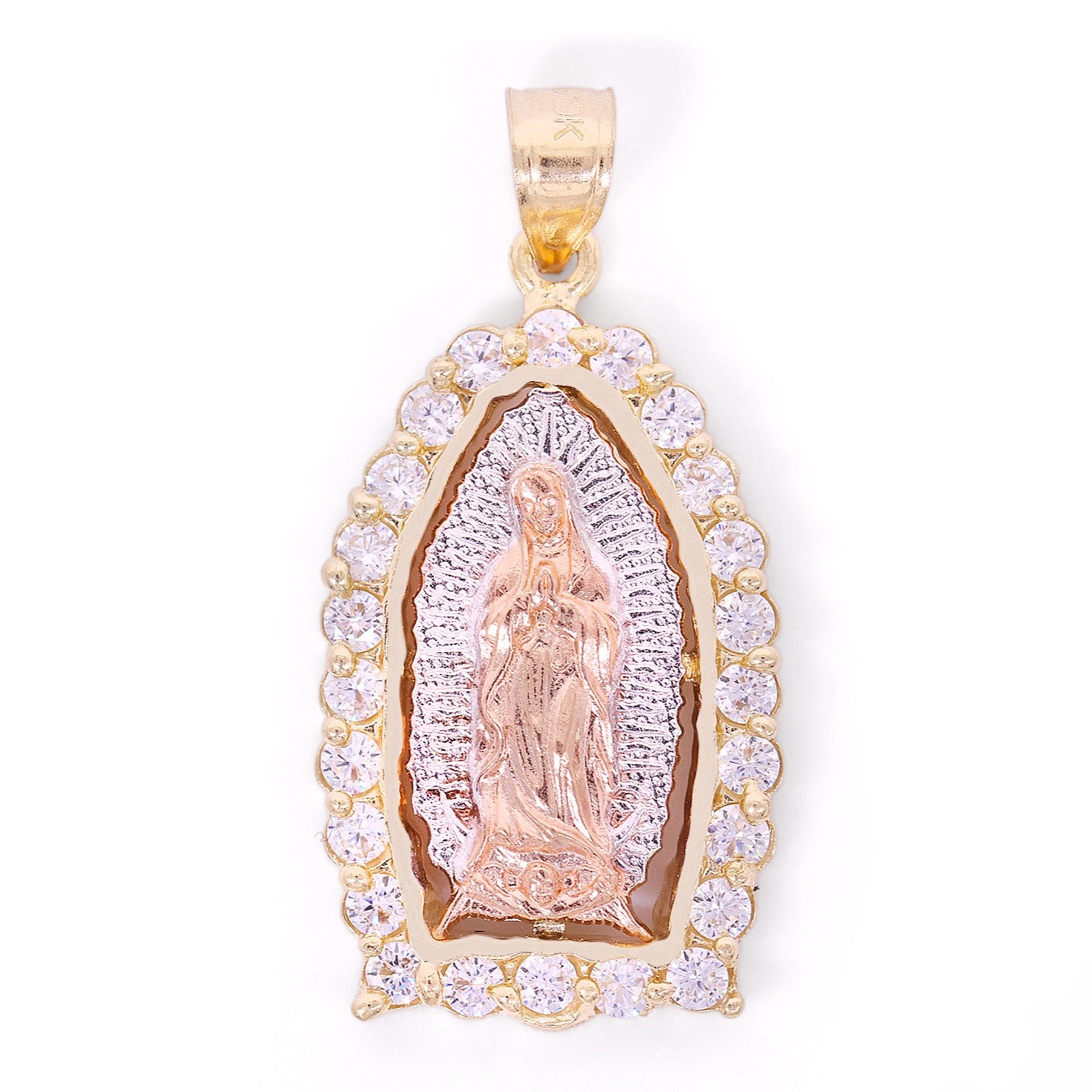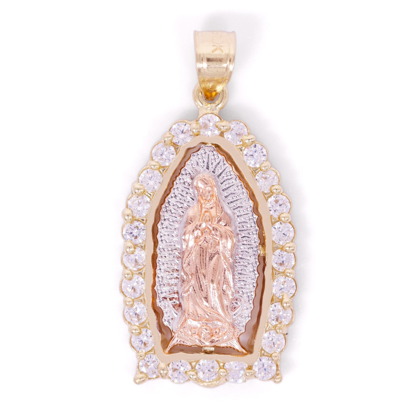 Iced Virgin Mary 3-Tone Pendant - 10k Gold