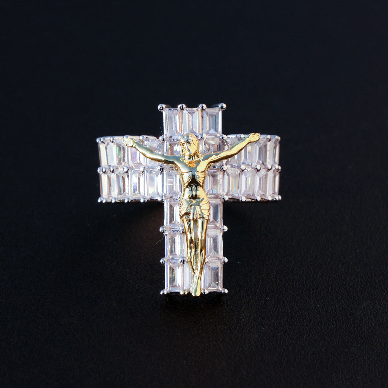Iced Out Baguette Crucifix Ring - 925 Silver