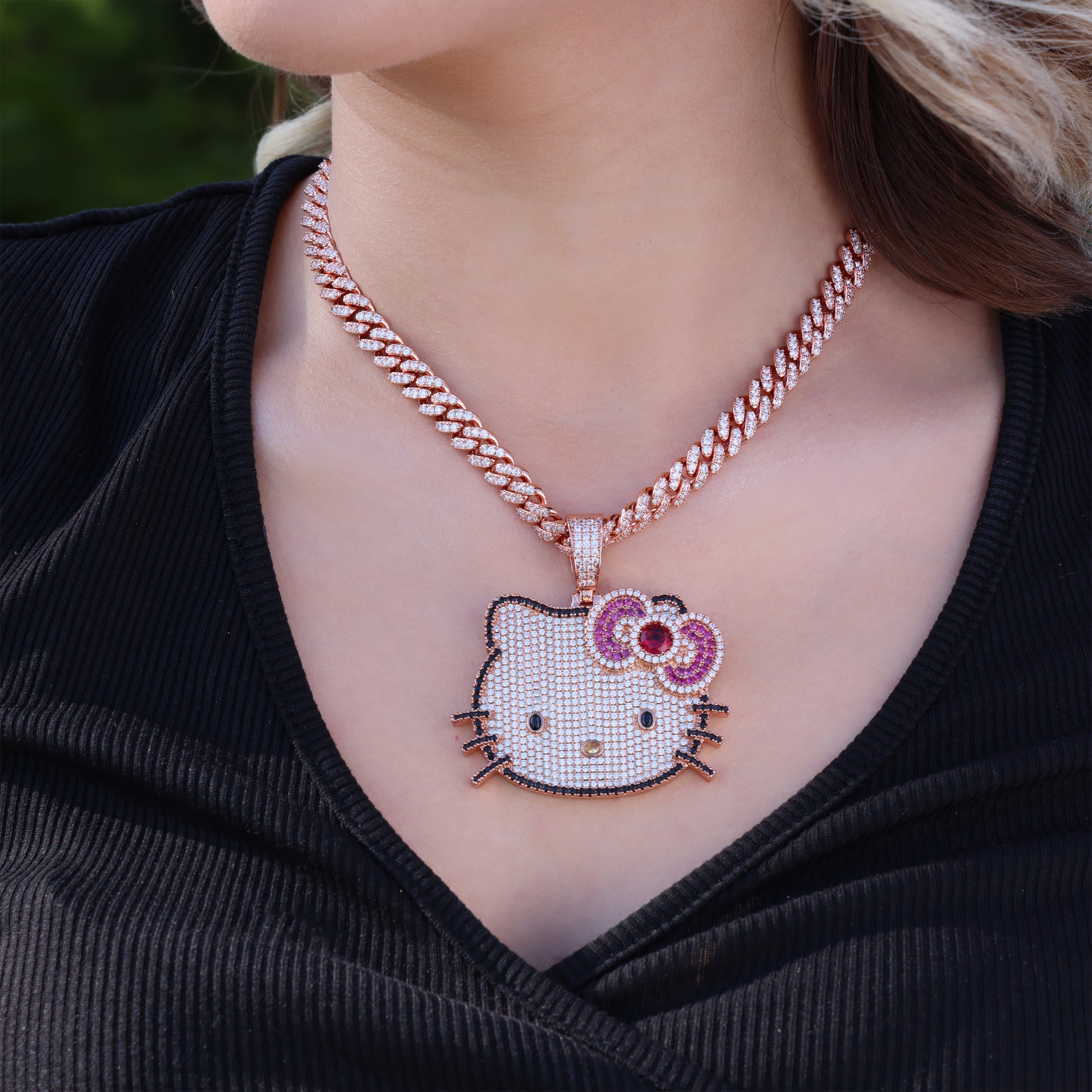 Icy Kitty Pendant - Rose Gold