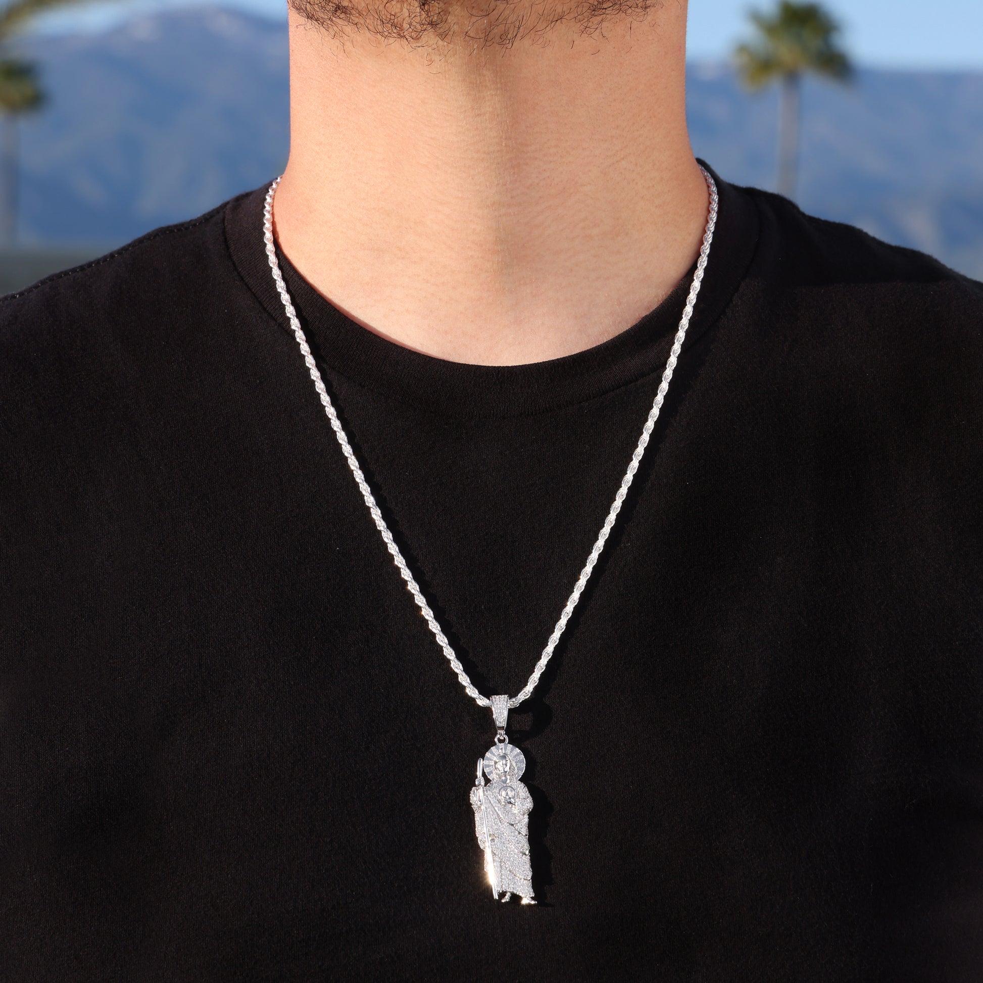 Fully Iced Out San Judas Pendant - Real 925 Silver