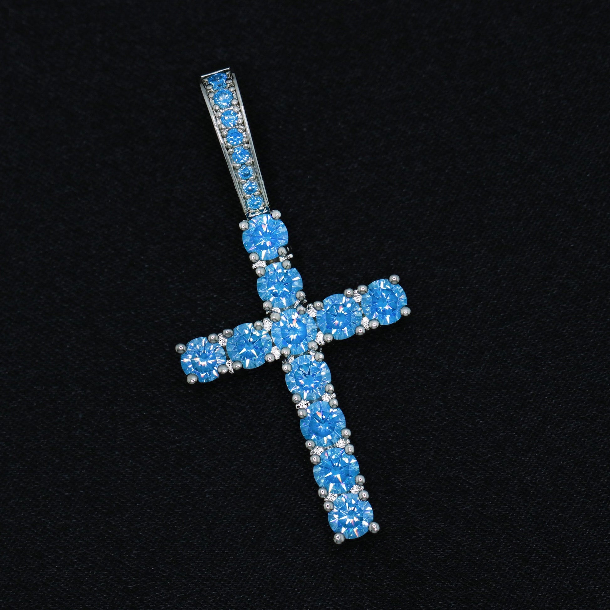 Small Blue Diamond Cross Pendant - White Gold